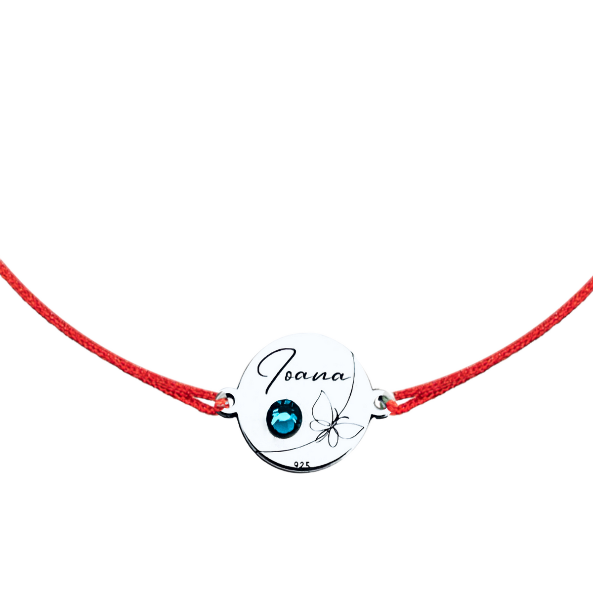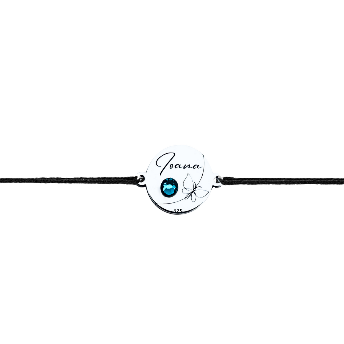 Bratara personalizata argint, snur reglabil si cristal - Nume si Fluturas