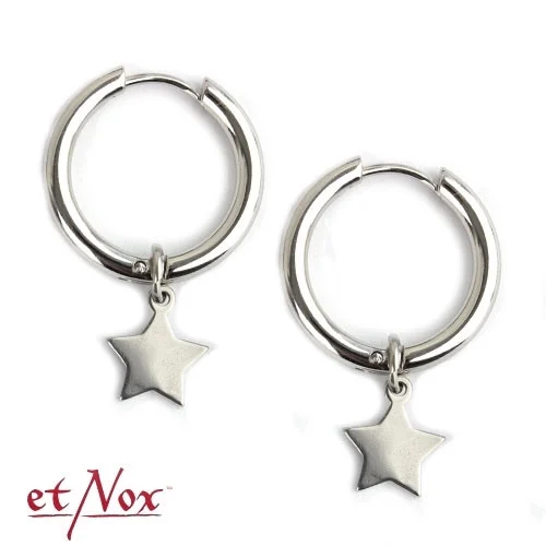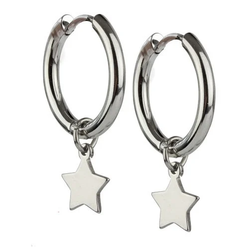 Cercei rotunzi din otel inoxidabil - Creole cu stea