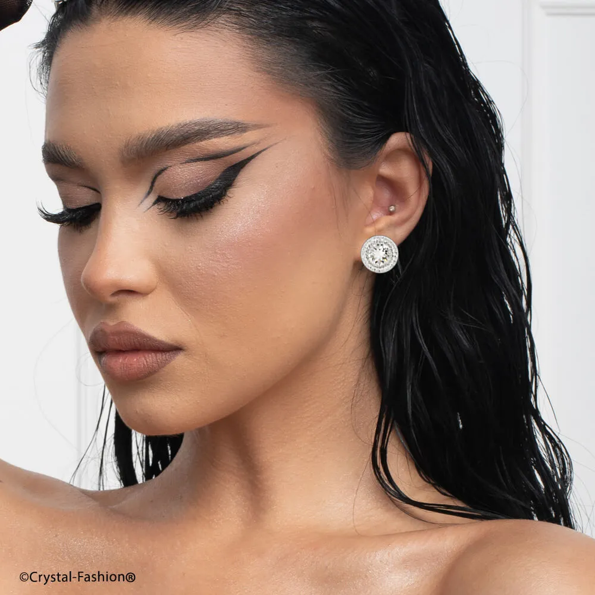 Cerceii „England Queen” sunt bijuteria #SignatureItem a colectiei noastre, cu un cristal central mare taietura Xirius, incadrat de doua randuri de cristale mici, totul din argint 925 fixat cu un surub supradimensionat care tine volumul din spatele lobului.