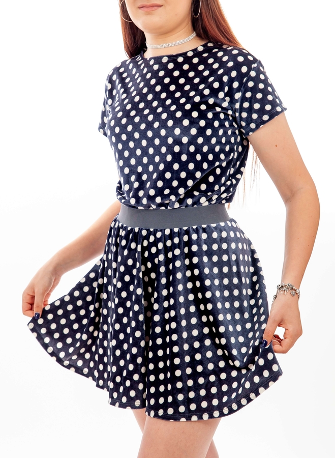 Compleu catifea, fusta + tricou gri-alb -Fusta clos, tricou la baza gatului