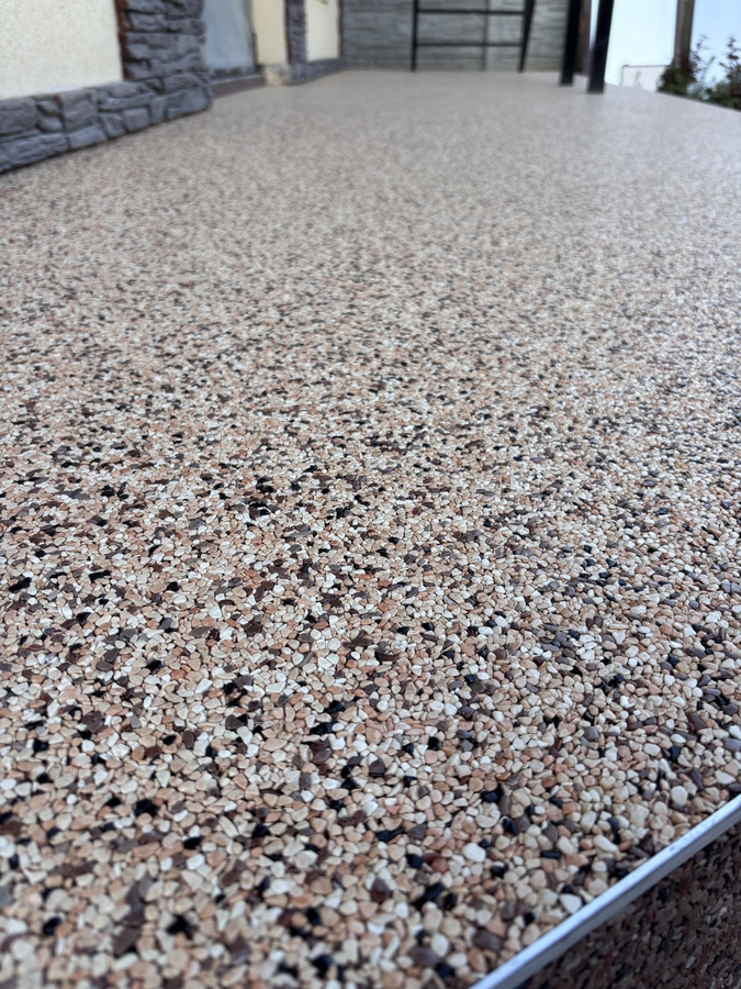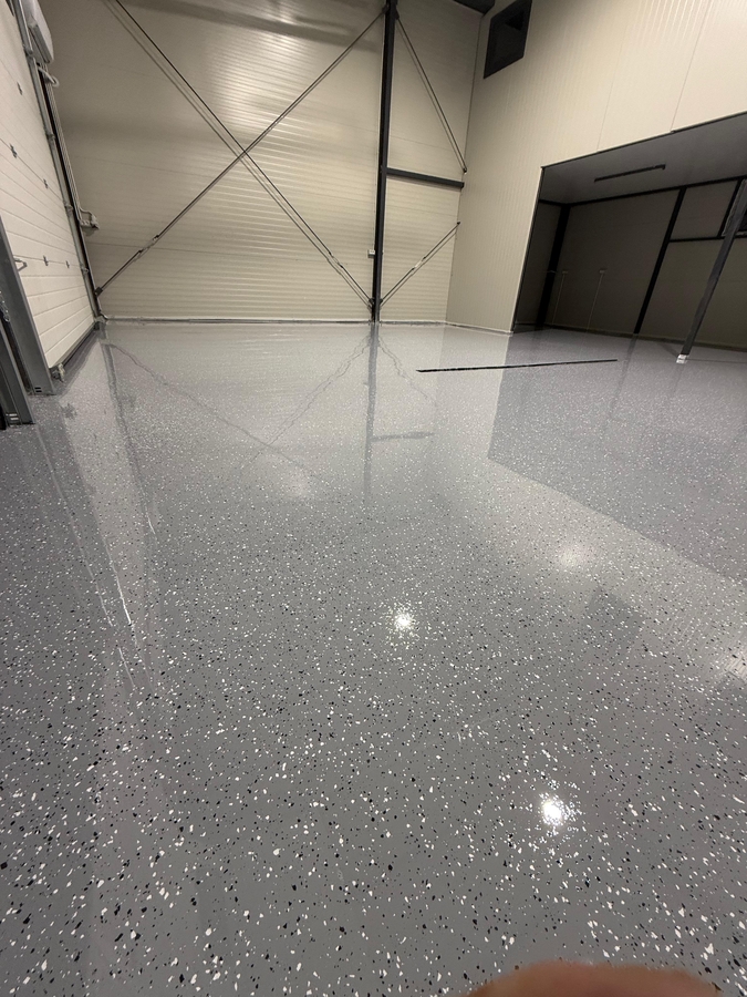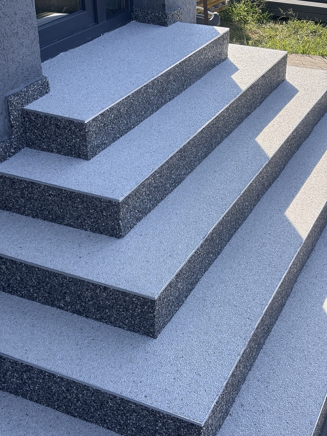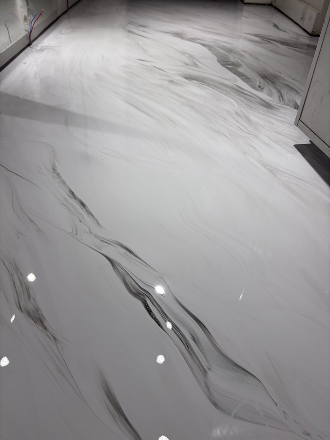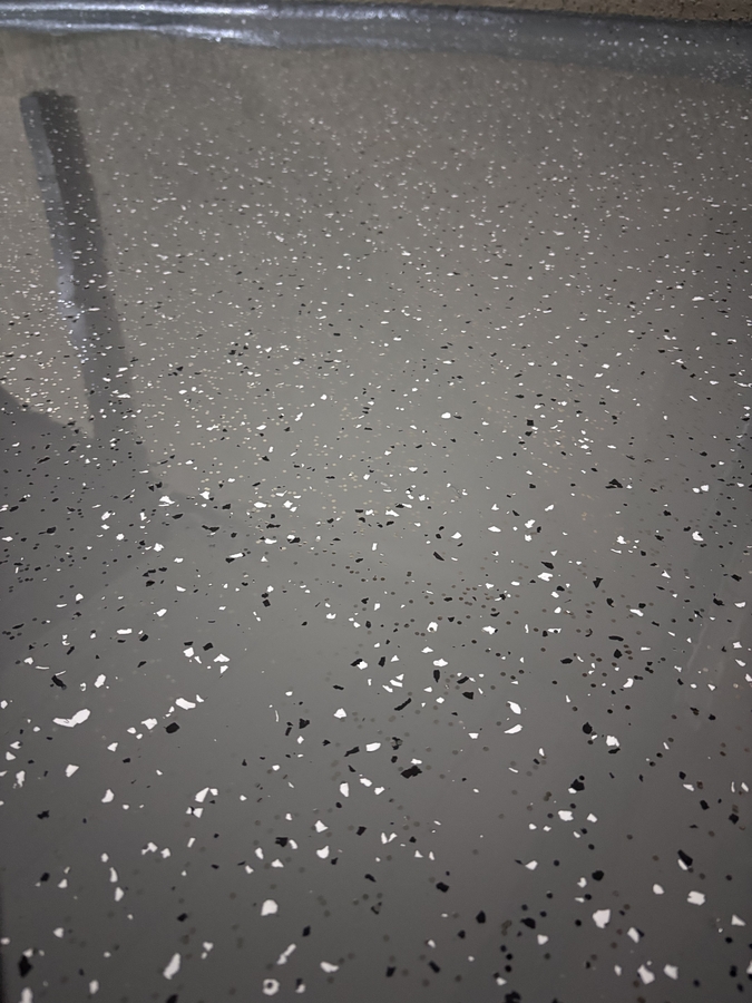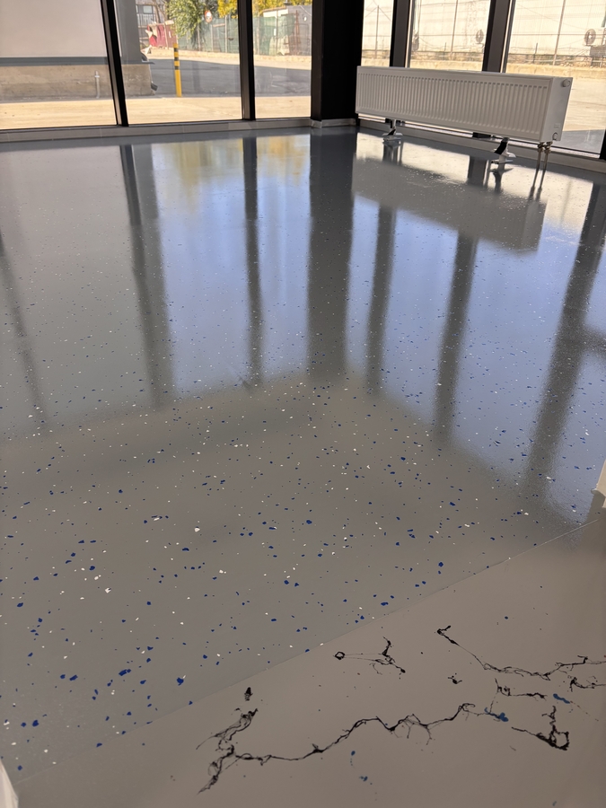 Aplicam sisteme epoxidice sau poliuretanice cu insertie de fulgi decorativi: