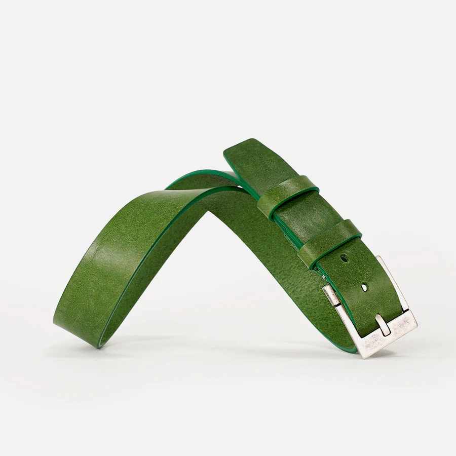Curea din Piele Italiana, Verde Deschis Antichizat, pentru Jeans