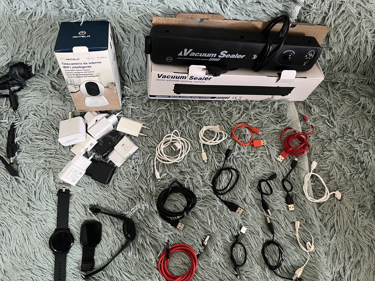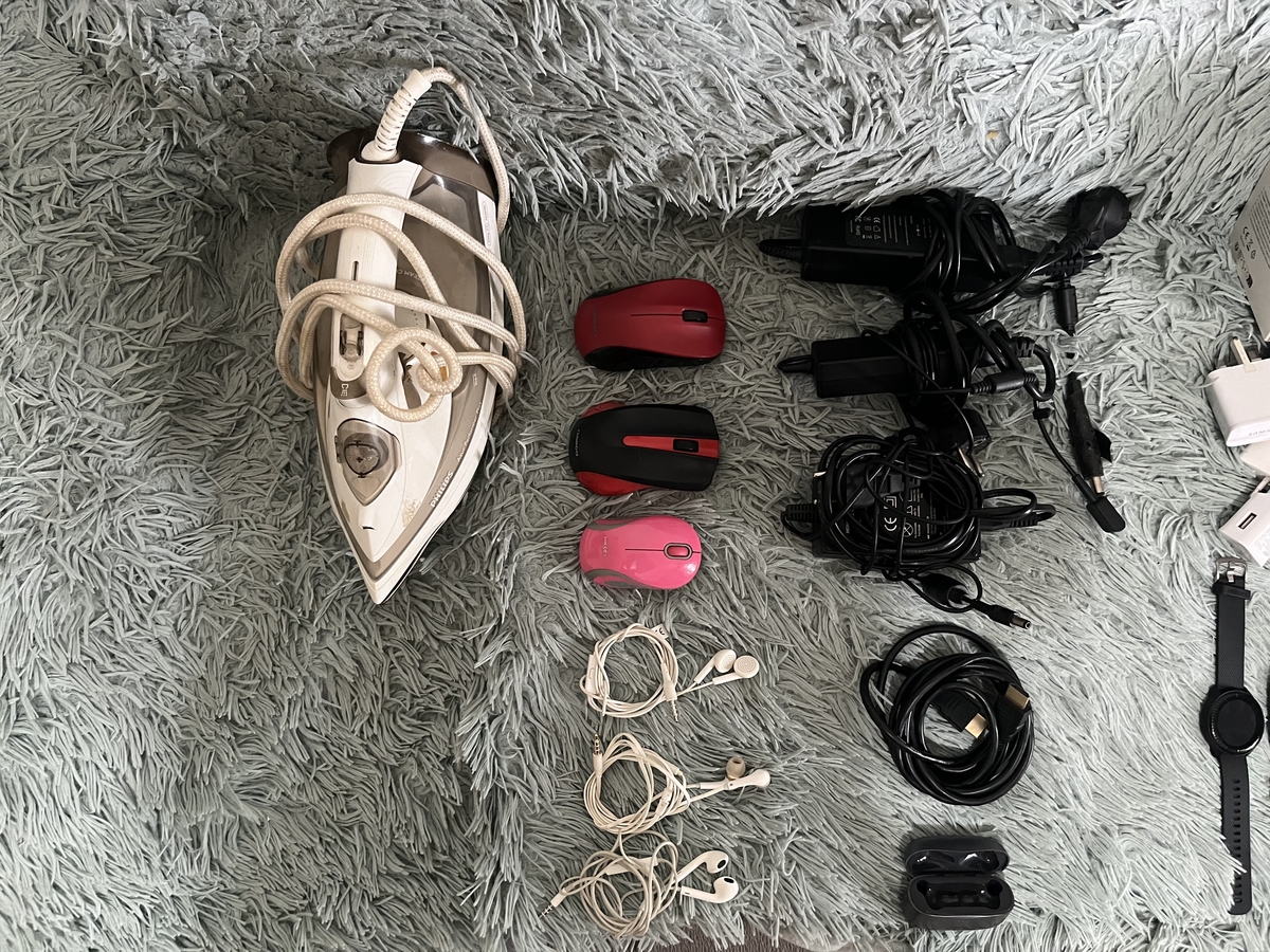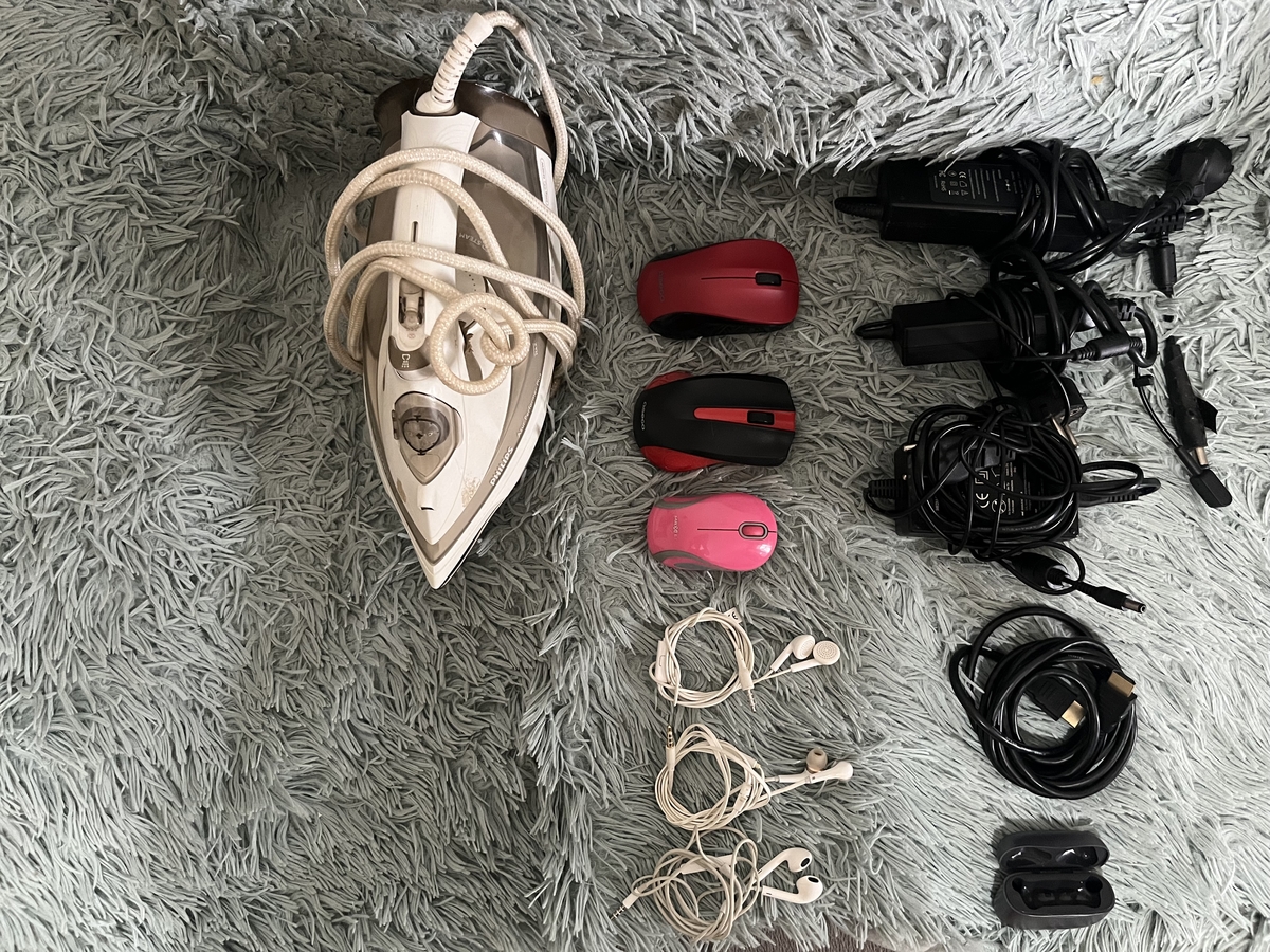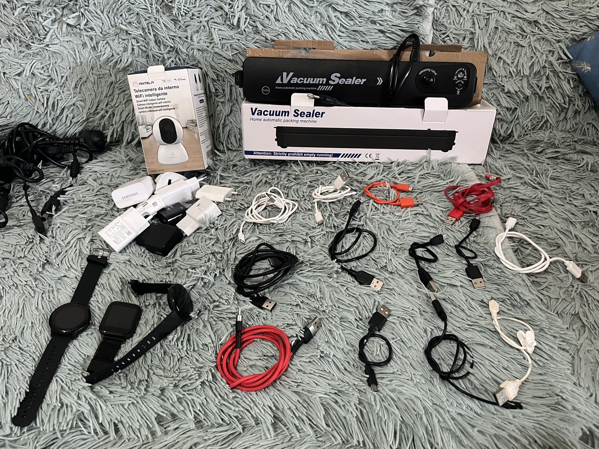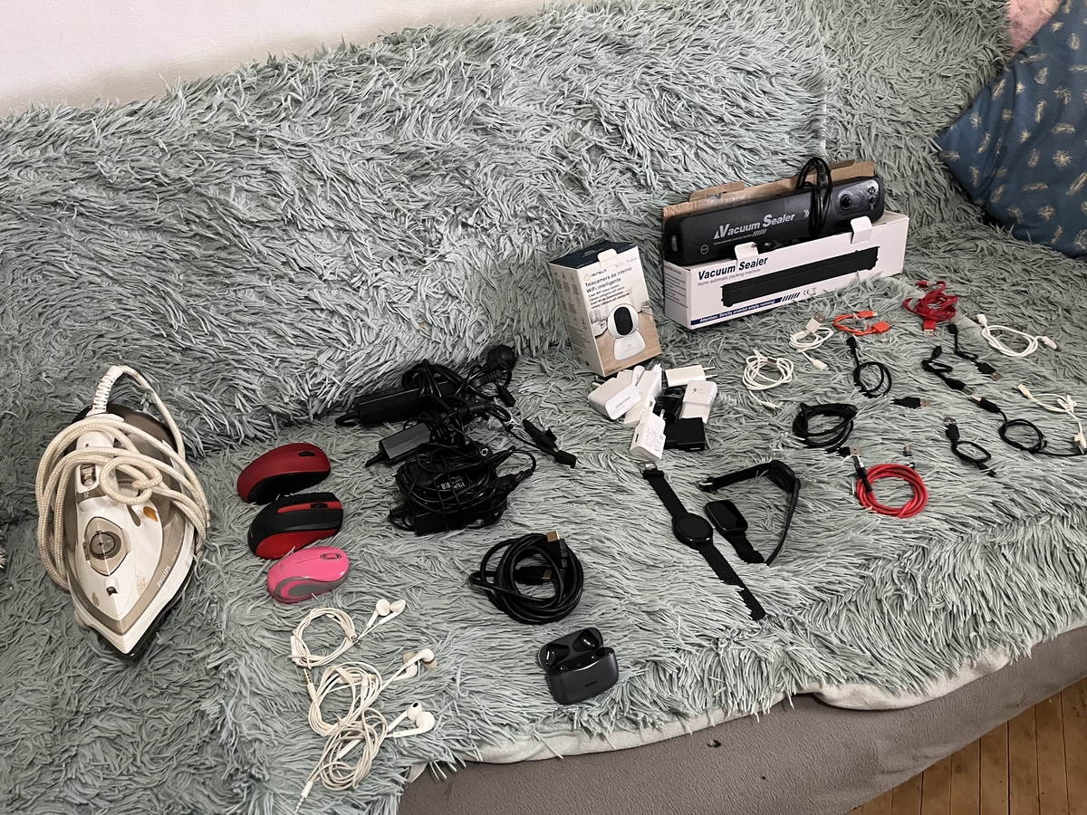 -laptop, fier de calcat, uscator de par, cabluri, incarcatoare telefon, incarcatoare laptop, casti, aparat de vidat, camera de filmat, smartwatch, componente aspirator (furtun, teava)