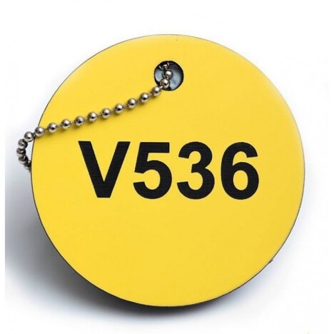 Vand Etichete de disc cu supapa personalizate la un pret foarte avantajos! Etichete de disc cu supapa personalizate Personalizati etichetele supapelor cu grosimea de 3 mm incarcand un fisier cu textul pentru gravare si selectand combinatia de culori. Apoi selectati cantitatea pentru a se potrivi cu datele din fisierul dvs. si adaugati-l in cos. Etichetele pot fi create cu mai mult de un rand de text. Utilizati o coloana separata in fisierul Excel pentru fiecare linie a etichetei. Fiecare eticheta cu 1 gaura include un lant cu bile nichelat de 100 mm cu conector, solutia ta completa. Set 10 bucati - La cererea clientului producem toata gama de etichete la orice dimensiune. Etichetele valvelor joaca un rol important in afisarea informatiilor care sunt vitale pentru operatiuni fara probleme si sigure pe santier sau in cladiri. Durabilitatea si lizibilitatea sunt principalele proprietati de dorit care se gasesc in etichetele de calitate ale supapelor. Etichetele de supapa gravate plasate pe tevi sau supape au nevoie de rezistenta la schimbarea rapida a temperaturilor, la substante chimice si, in unele cazuri, la deteriorarea rozatoarelor. .Baza noastra de clienti comanda etichetele noastre de disc pentru o gama larga de scopuri, inclusiv echipamente de etichetare cu avertismente pentru pericole, care protejeaza impotriva eventualelor daune angajatilor.
