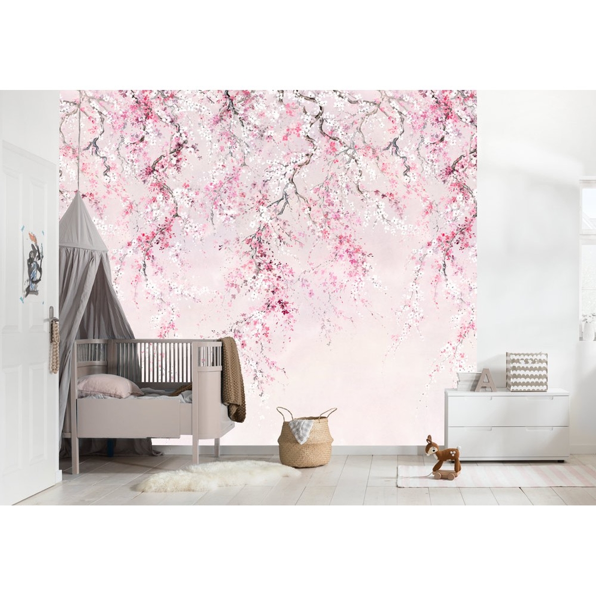 Fototapet floral, model flori cires, print digital, nuante de roz