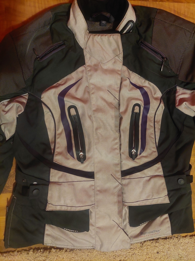 touring, ATV. Am si alte echipamente moto (geaca, pantaloni, protectii moto, manusi, vesta, etc) - Geaca moto textila de dama, Vanucci Ventus, ideal moto, chopper, touring, atv, enduro - marime 40, corespunde unui L (latura pe talie 48-50 cm, inaltime pe spate 69-71 cm, latura piept 54-56 cm), fabricatie Germania, are peste tot parti reflectorizante, diverse reglaje pe brate, talie, incheietura mainii, diverse aerisiri, are 4 buzunare pe fata, doua pe interior, fermoar mic si mare pentru prindere pantaloni, protectii soft peste tot, material respirabil la interior, trimit oriunde in tara.