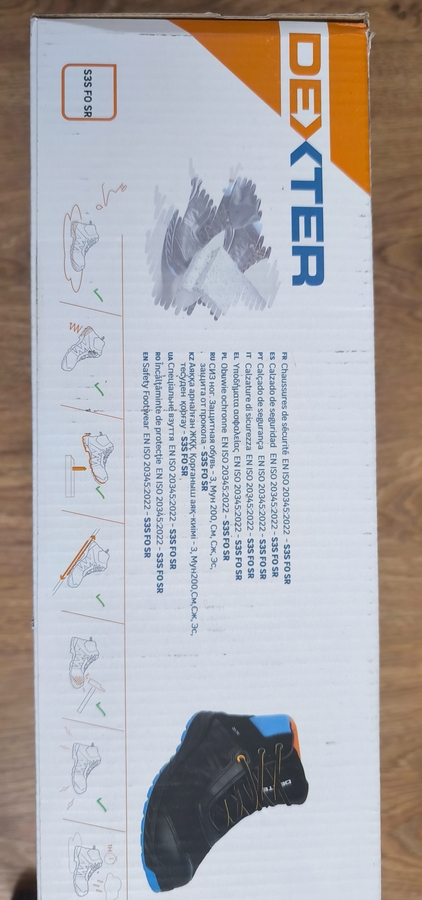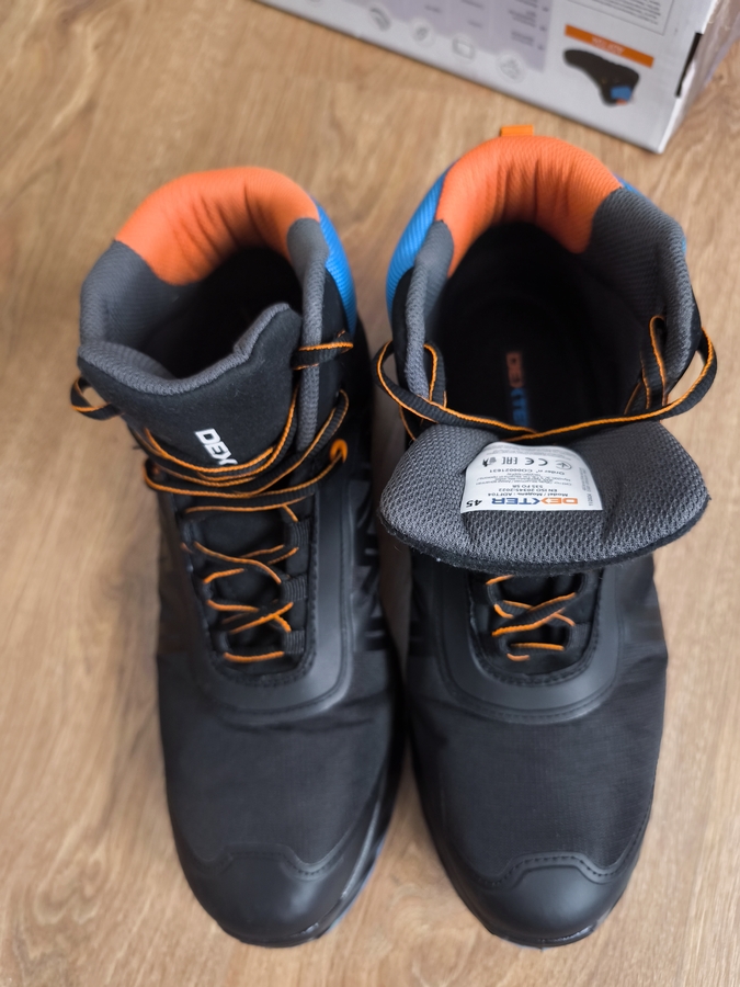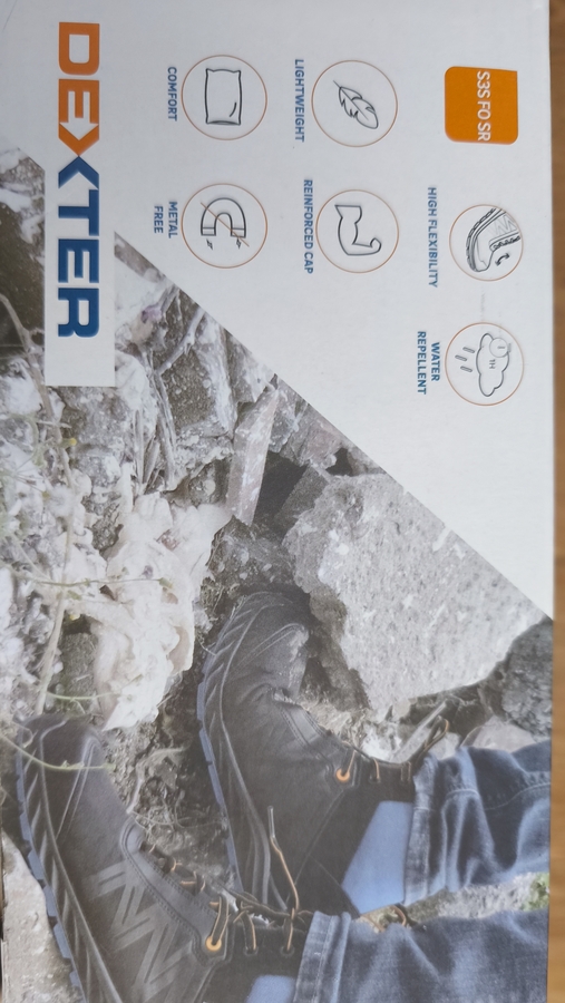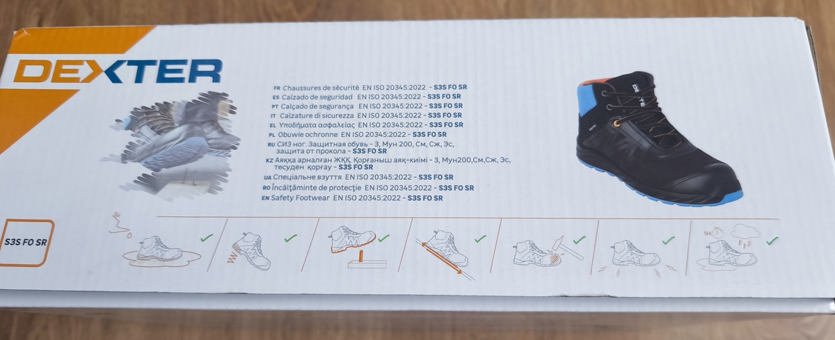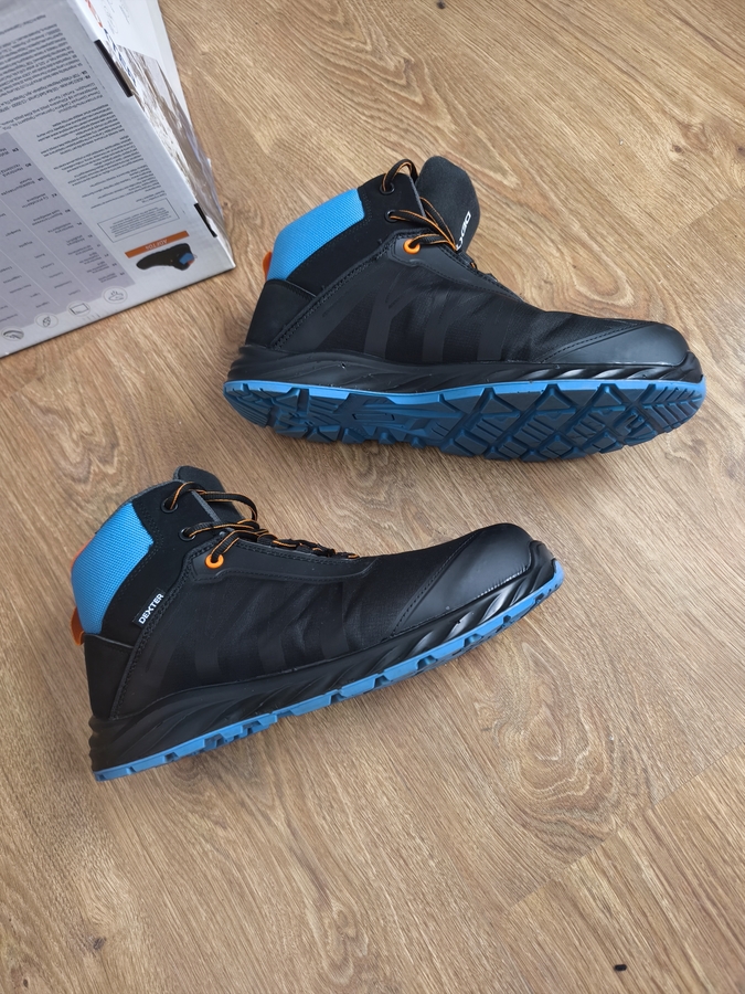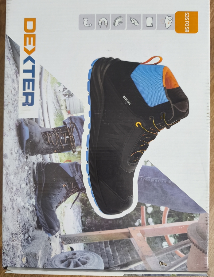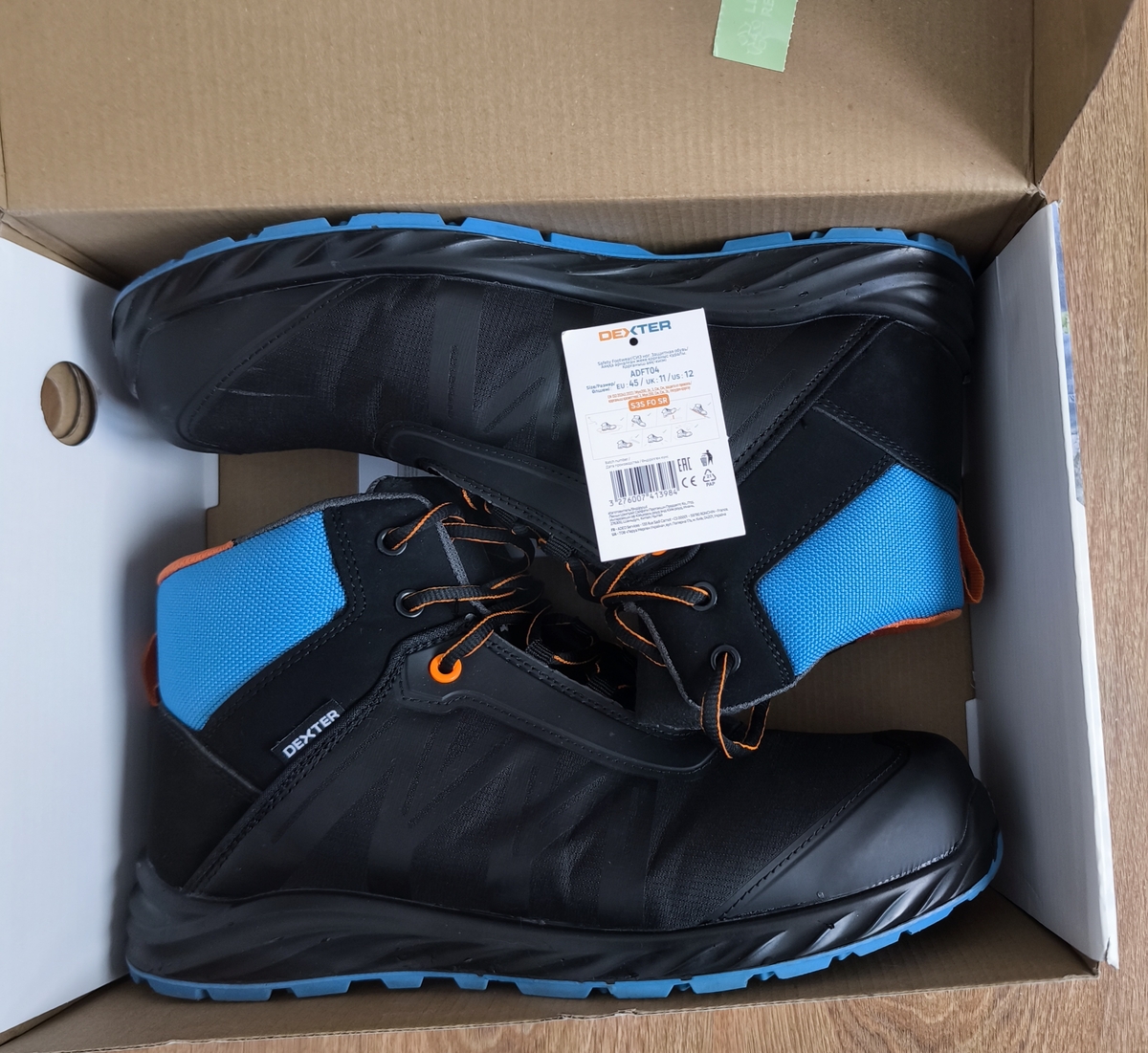 New work boots. Size EU 45. Dexter S3S FO SR, Water repellent, high flexibility, lightweight, reinforced cap, confort, metal free. EN ISO 20345:2022, Ghete de lucru noi. Marimea EU 45. Dexter S3S FO SR, Impermeabile, flexibilitate ridicata, usoare, captuseala intarita, confortabile, fara metal. EN ISO 20345:2022