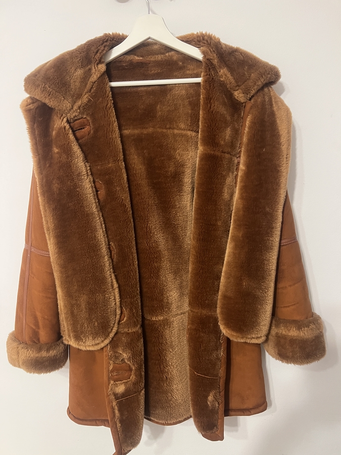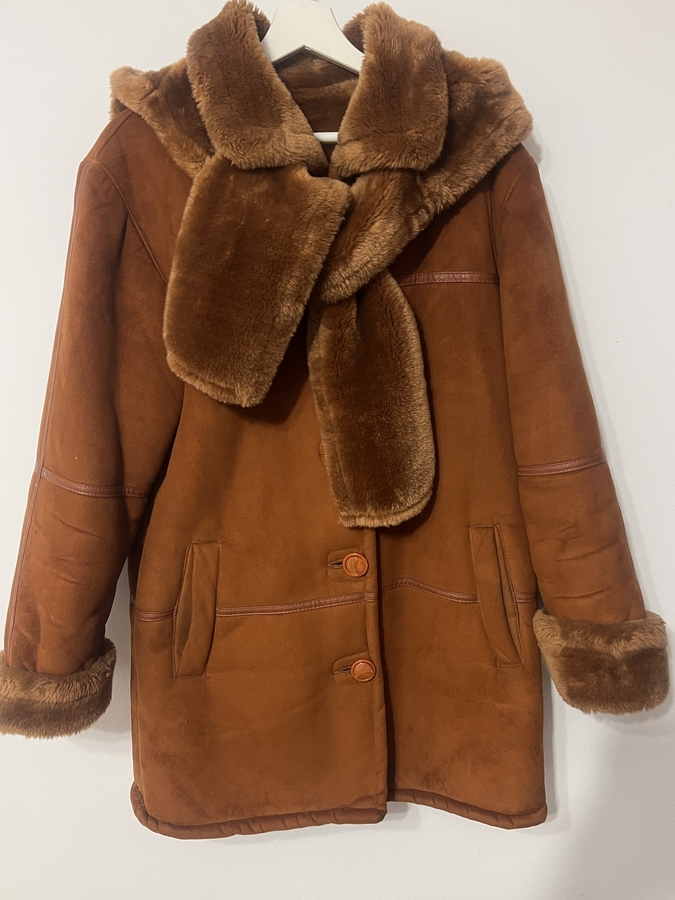 Haina dama tip cojoc cu gluga si fular elegant din blana, imblanita la interior, foarte calduroasa, marime 42-46, culoare maron
