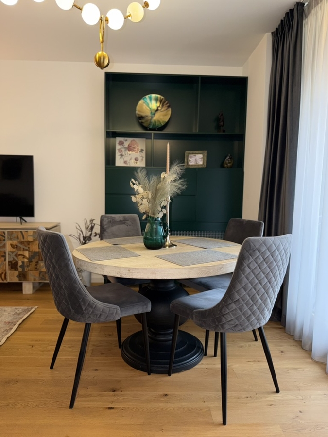 Apartamentul detine centrala termica proprie, 2 bai, balcon, mobilier premium.