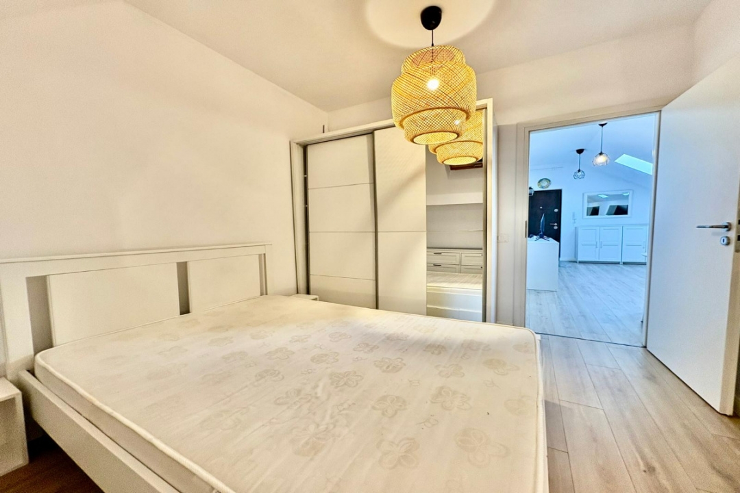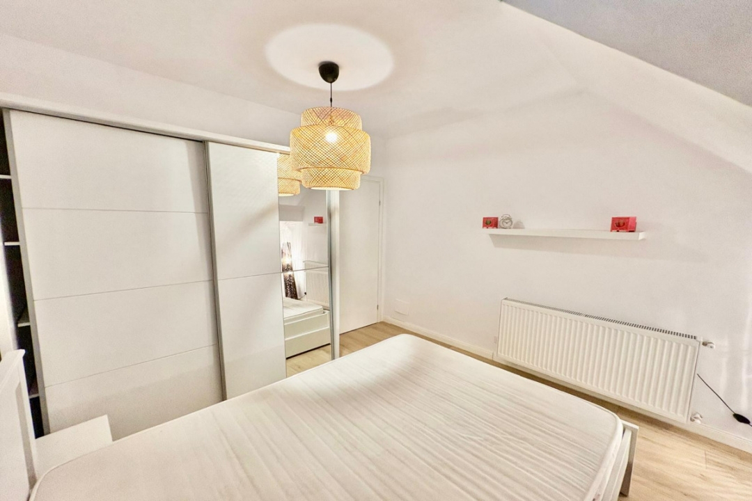 Amplasat convenabil pe o strada linistita, la cateva minute de mers pe jos de statia de metrou, piata si parc. Apartament confortabil, situat la mansarda, potrivit pentru un cuplu sau o persoana. Imobil de 3 etaje din 2018, curat si bine intretinut, cu access securizat. Interior vesel si luminos, recent igienizat, echipat cu centrala proprie.