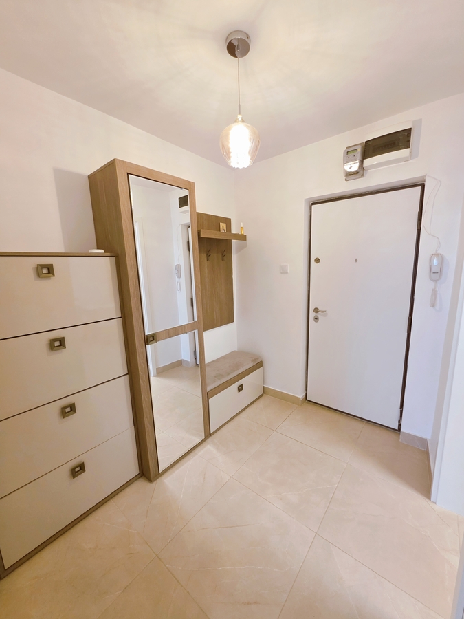 Apartamentul se afla la etajul 4/8 al unui bloc construit in anul 1960, termoizolat, are o suprafata totala de 65 mp si este semidecomandat, fiind compus dintr-un living luminos, un dormitor mare si confortabil, o bucatarie functionala, o baie moderna si un balcon cu o vedere frumoasa spre Calea Victoriei si Novotel. Apartamentul a fost renovat recent, are finisaje de cea mai buna calitate, gresie, faianta, usi noi de lemn, geamuri termopan si usa metalica la intrare. De asemenea, este mobilat si utilat complet, electrocasnice noi, iar cele doua aparate de aer conditionat si centrala termica de bloc asigura apa calda si caldura oricand aveti nevoie. Un alt atu al acestui apartament este parchetul nou din camere care confera o nota de eleganta si caldura.