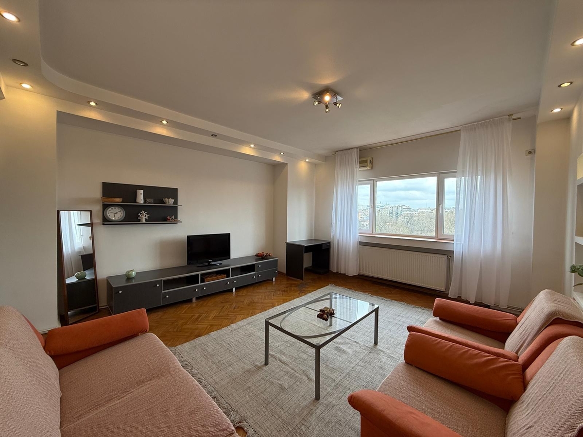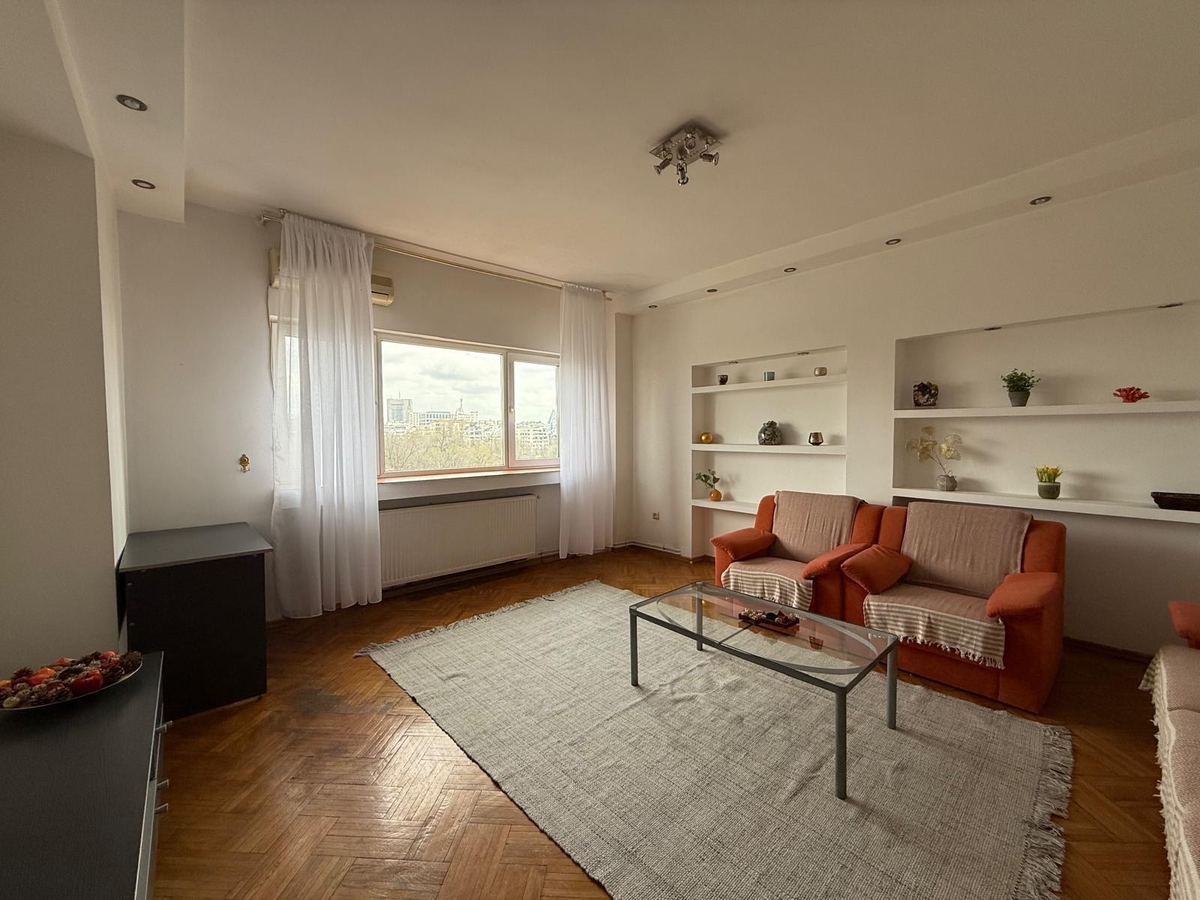 Schitu Magureanu, apartament cu 2 camere decomandate, foarte spatioase suprafata 68 mp, etaj 7/8, vedere panoramica catre parcul Cismigiu, mobilat, centrala termica de apartament, 2 aparate de aer conditionat. Pret 550 euro.