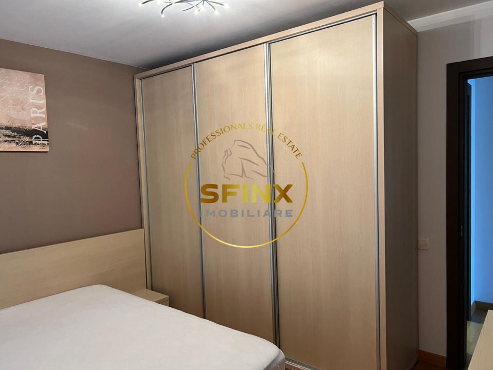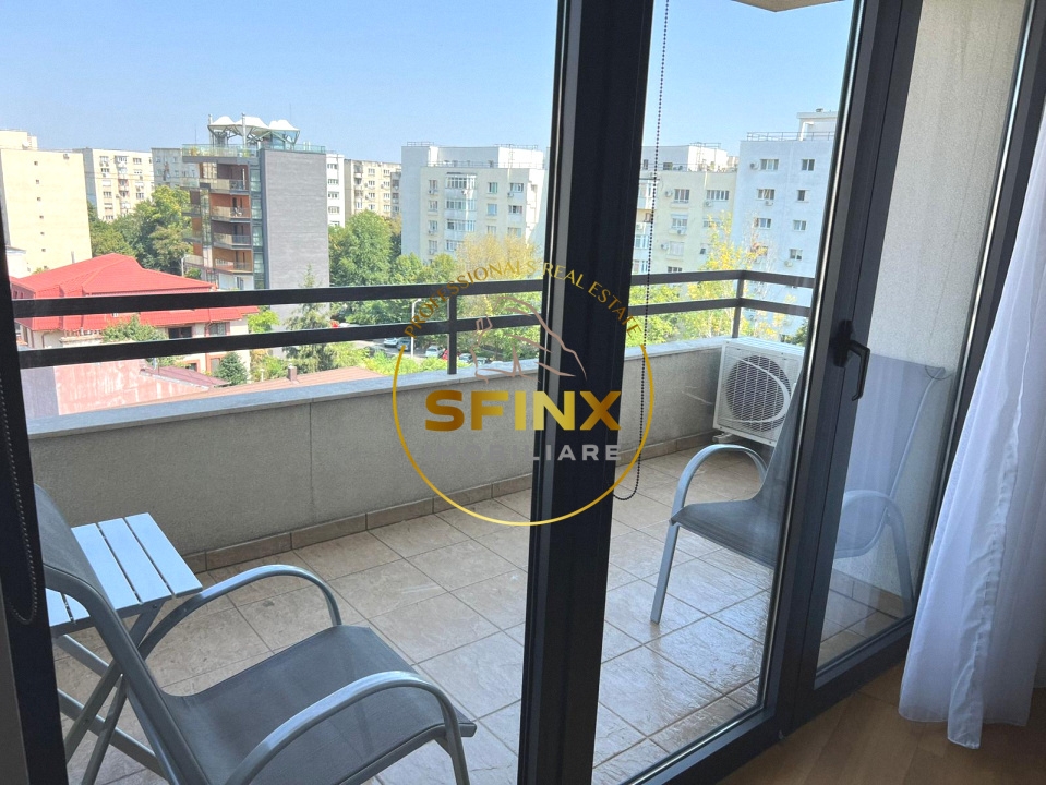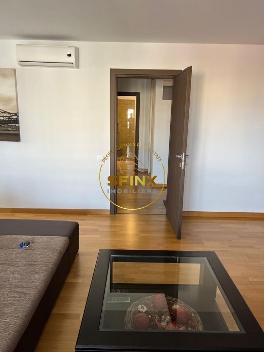 Apartamentul este decomandat, are o suprafata generoasa de 67 mp, la care se adauga un balcon de 7 mp, si este format din hol, living, bucatarie, dormitor, baie si balcon. Este complet mobilat si utilat modern, dispune de doua aparate de aer conditionat, iar incalzirea este asigurata de centrala proprie pe gaz.
