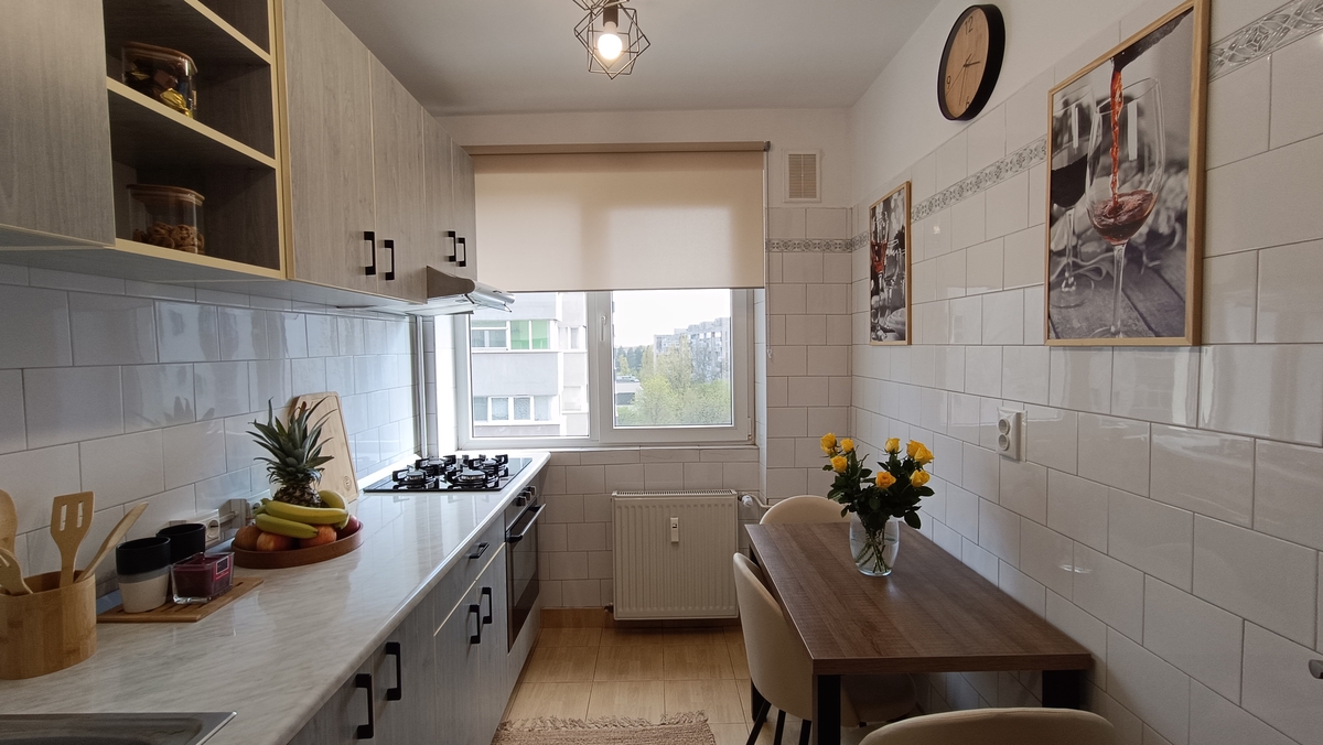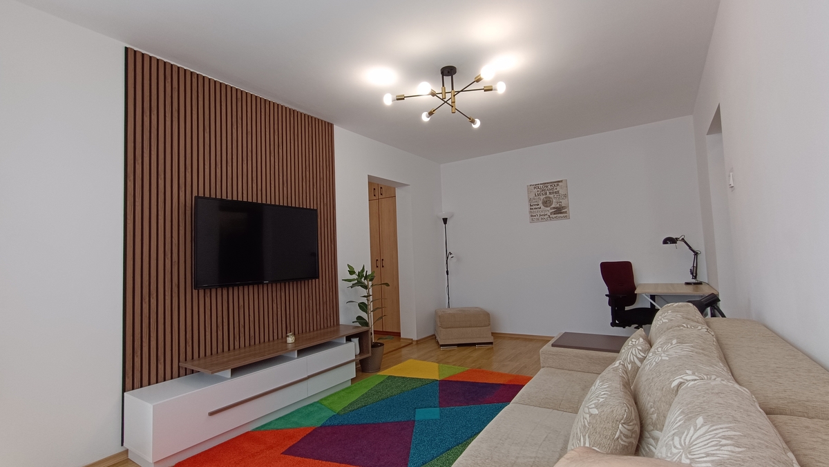 Mobilat modern, spatiu special creat pentru work from home cu scaun professional-Steelcase si birou, 2 aer conditionat, 2 smart TV-uri ,masina de spalat rufe, bateri Grohe, frigider, cuptor microunde, hota, repartitoare, apometre, acest apartament confortabil si primitor este locul ideal pentru orice familie.