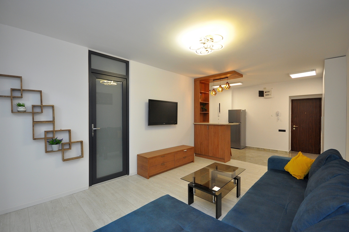 Este compartimentat semidecomandat, dispune de dormitor, sufragerie deschisa cu balconul, bucatarie deschisa cu holul si o baie foarte generoasa.