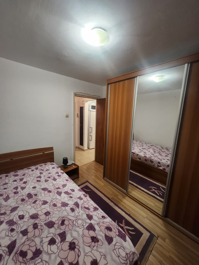 2 camere, decomandat, etaj1/10, mobilat si utilat (aragaz + frigider + masina de spalat + aer conditionat + cuptor microunde + tv), gresie + faianta + parchet + termopan + usa metal, bloc reabilitat,