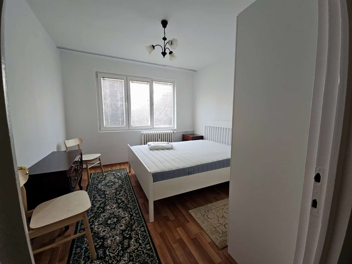 Este prima inchiriere dupa zugravire. Mobila de dormitor este Ikea si este noua: pat cu saltea, dulap si scaune noi - prima folosinta. Soarele nu arde vara, pentru ca apartamentul este pe nord.