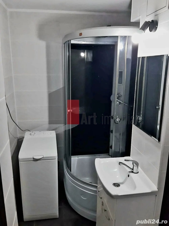 - baie cu: masina de spalat rufe verticala Zanussi si cabina de dus;