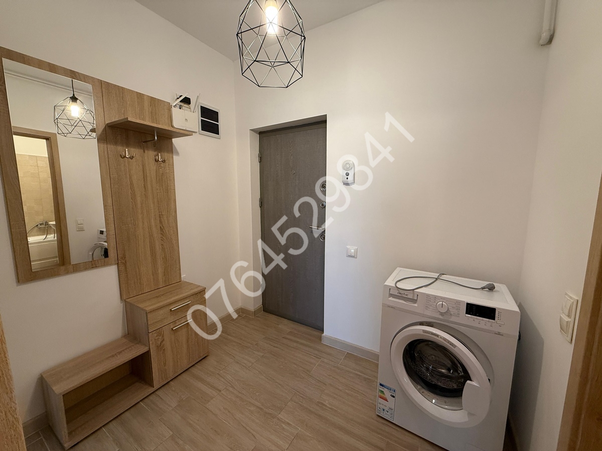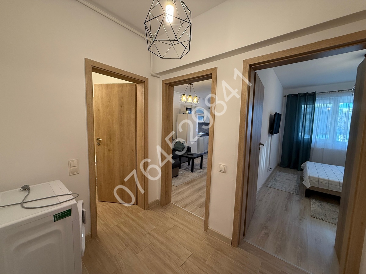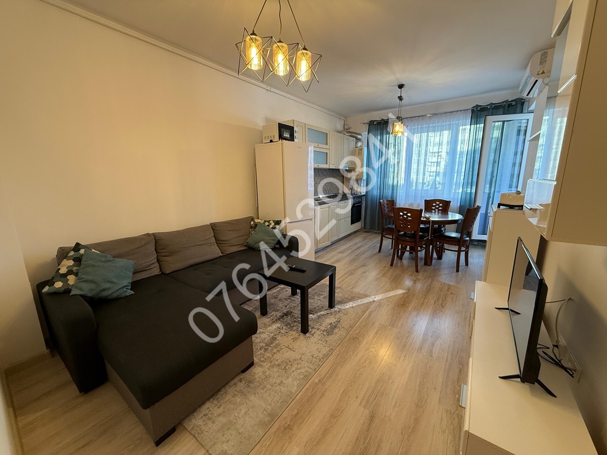 Balcon deschis, centrala termica Immergas pe gaz cu termostat ambiental, aer conditionat, 2 televizoare Vortex smart, canapea extensibila tip coltar in living, pat matrimonial in dormitor, dressing, spatii depozitare, plita pe gaz+cuptor electric+hota incorporate, cuptor cu microunde,masina de spalat rufe, combina frigorifica, fier calcat, masa calcat, suport uscat rufe.
