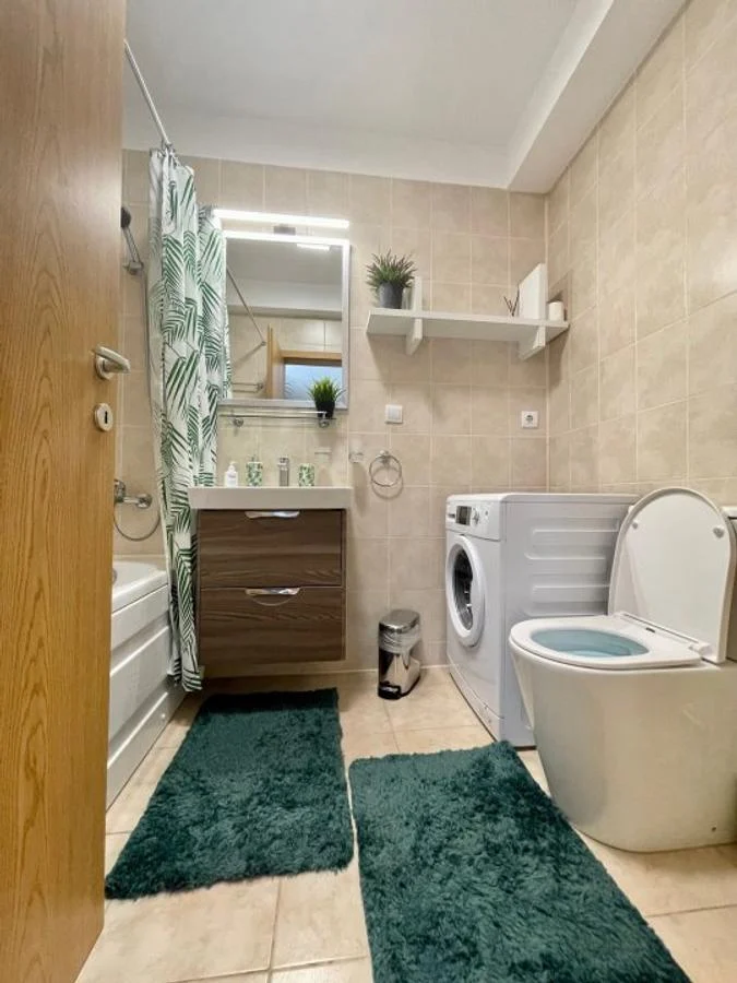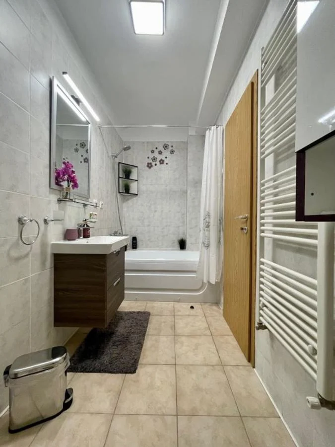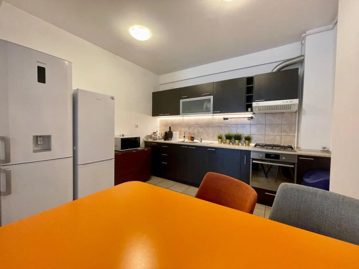 bloc nou, apartament 2 camere modern, centrala proprie, constructie 2014, 2 bai, confort 1, open space, etaj 1/4, 75 mp, recent renovat, finisaje de calitate, mobilat modern, utilat complet cu: plita pe gaz, cuptor, hota, frigider, masina de spalat, TV, aer conditionat, liber