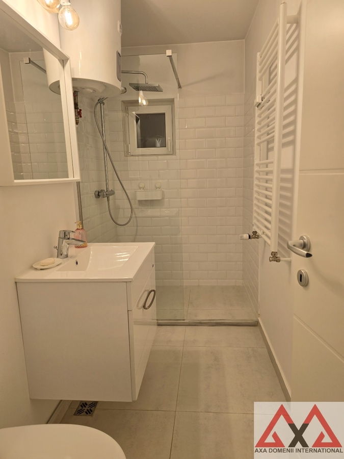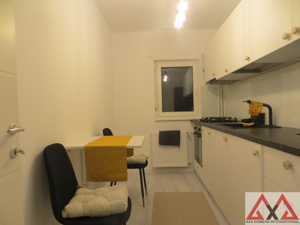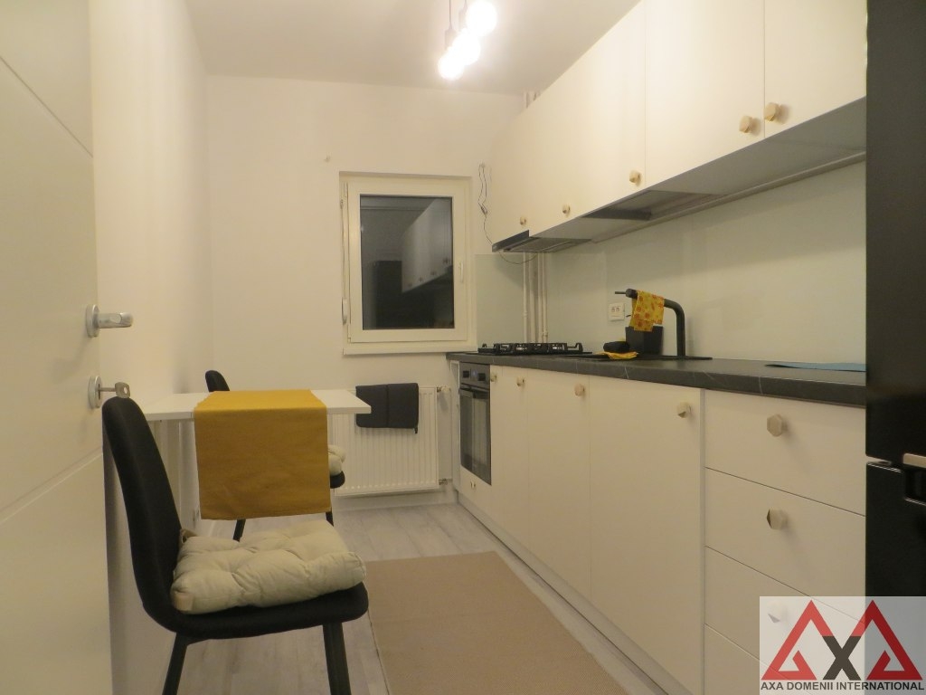 Apartamentul se inchiriaza mobilat si utilat complet (plita pe gaz si cuptor electric Samsung, hota, frigider, doua aparate de aer conditionat, doua televizoare, masina de spalat rufe).