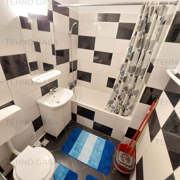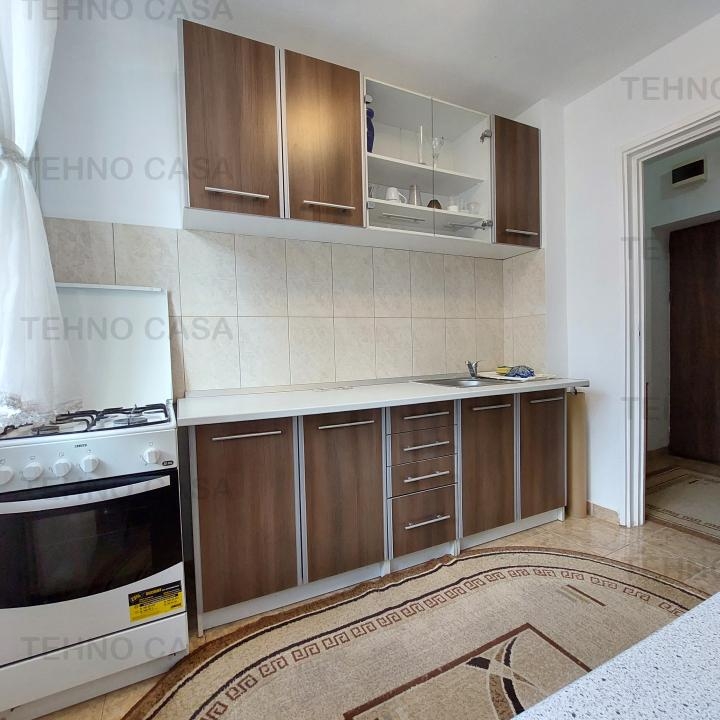 Apartamentul are bucataria inchisa, este mobilat si utilat complet ( aragaz, frigider, masina de splat rufe, televizor, in living canapeaua este extensibila, in dormitor pat de mijloc si dulap puntru haine cu 3 usi), atat mobilierul cat si electrocasnicele sunt apoape noi, foarte putin folosite.
