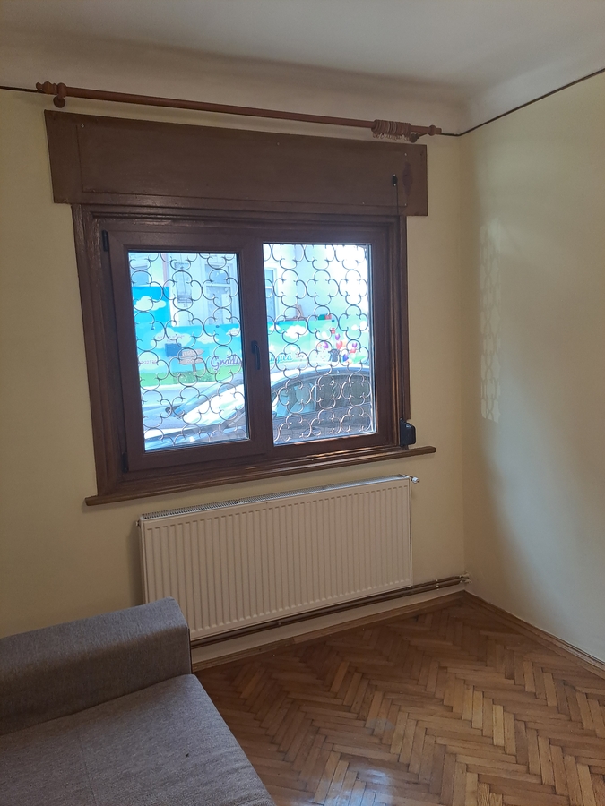 2 camere +sufragerie, hol,baie, bucatarie utilata complet , debara,usa metalica, parchet, geamuri termopan, centrala proprie, totul contorizat, semimobilat,parter, pretabil si pentru birou, locuinta,etc.