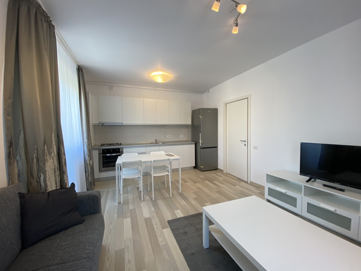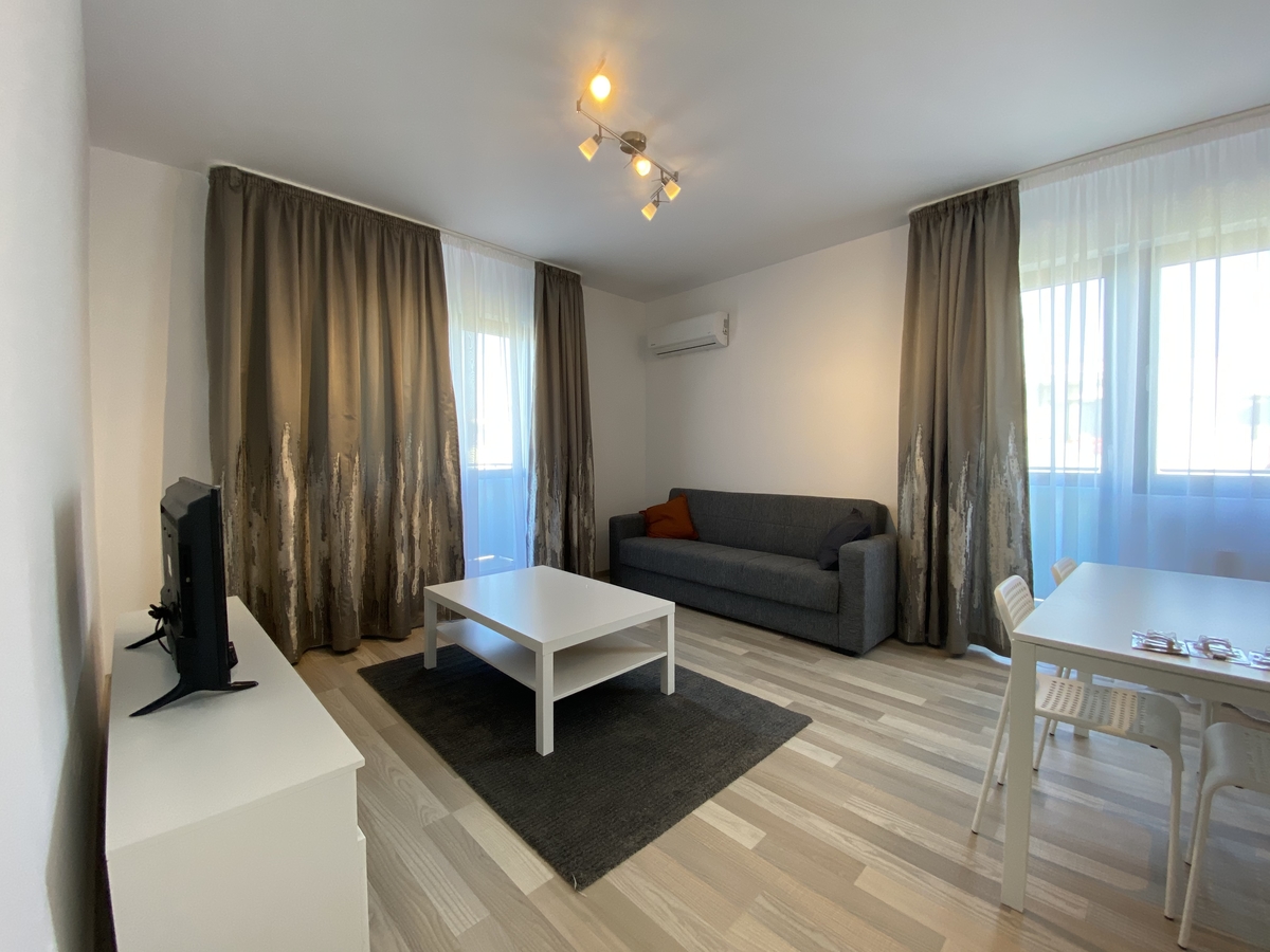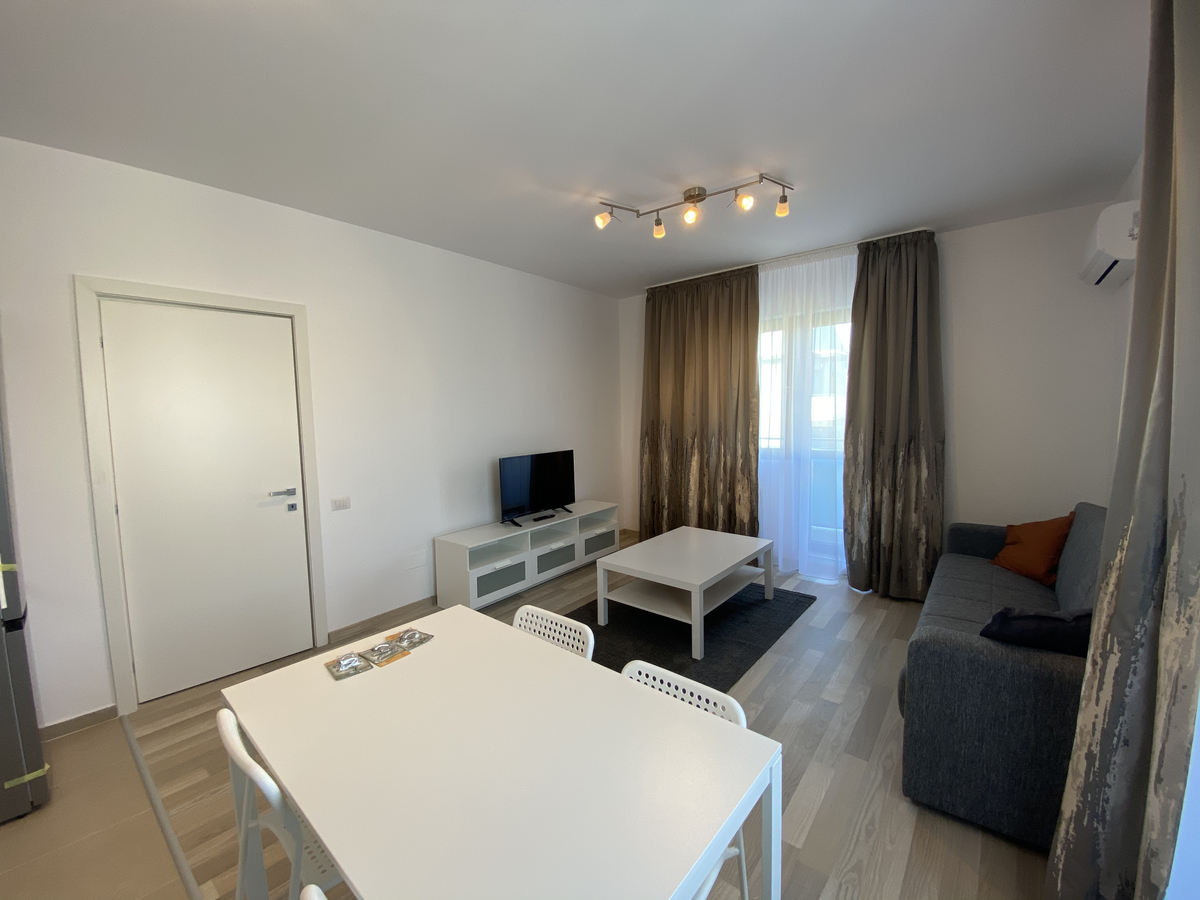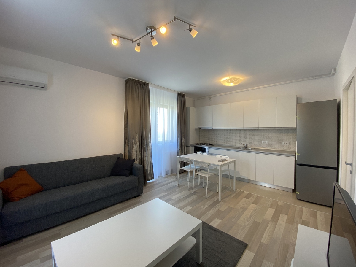 Situat la etajul 5/9, intr-un imobil dat in folosinta in anul 2019. Apartamentul dispune de finisaje precum: gresie, faianta, parchet, termopan, aer conditionat, centrala termica proprie si 2 balcoane. Aceasta se inchiriaza mobilat si utilat complet.