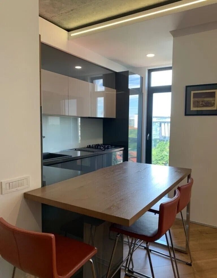 Apartamentul are 72 mp utili+ 1 balcon de 7 mp, 1 baie+ 1 wc de serviciu, 2 locuri de parcare subterana. Se inchiriaza complet utilat si mobilat cu mobiler Rovere, dipsune de finisaje de calitate, aer conditionat, centrala termica proprie, bucatarie open space, modern mobilata si echipata, usa metalica, lift.
