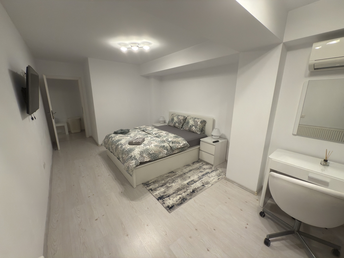 Proprietar, inchirez apartament 3 camere, decomandat, cu suprafata utila de 78mp, etajul 3/4. Apartamentul este mobilat si utilat modern avand urmatoarea configuratie: Living cu bucatarie - open space, dressing cu birou, dormitor matrimonial, baie cu cabina dus si bideu. Apartamentul este dotat cu centrala termica proprie, gresie, faianta, parchet, geamuri tripan, masina de spalat rufe cu uscator, plita cu inductie si cuptor electric, 2 aparate aer conditionat, TV, balcon spatios cu vedere la parc, loc de parcare auto inclus. Blocul este dotat cu lift si interfon, situat in Complexul Airport Residence cu acces bariera, piscina, spatii verzi, cu acces rapid la mijloacele de transport in comun: Autobuze Expres pe traseul: Aeroport - P-ta Unirii, Bucuresti prin DN1, la 10 minute de Baneasa Shopping City, Metro, Mobexpert si Ikea. Transport Feroviar pe linia Expres: Gara de Nord Bucuresti - Aeroportul International Henri Coanda cu statie supraterana in apropierea complexului Airport Residence. Complexul este situat in vecinatatea Aeroportului International Henri Coanda Otopeni si a patinoarului Telekom Arena.