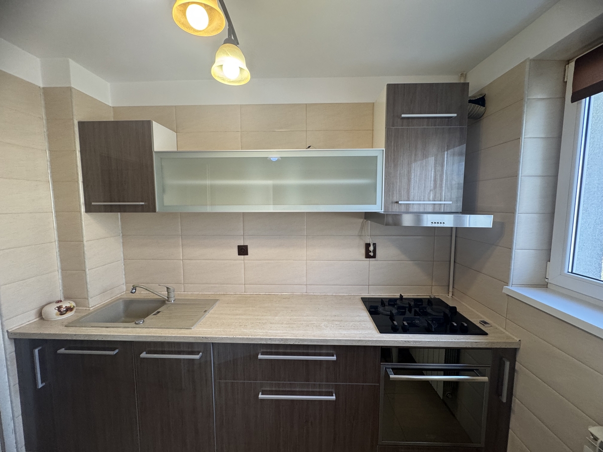 3 camere cf. 1, etaj 3/ 4 mobilat si utilat Modern, 8 min. pana la metrou Costin Georgian, aer conditionat, tv led.
