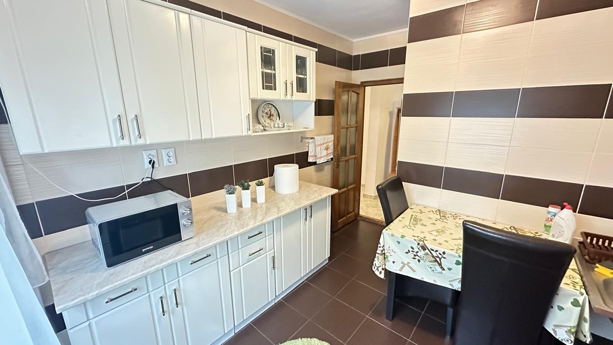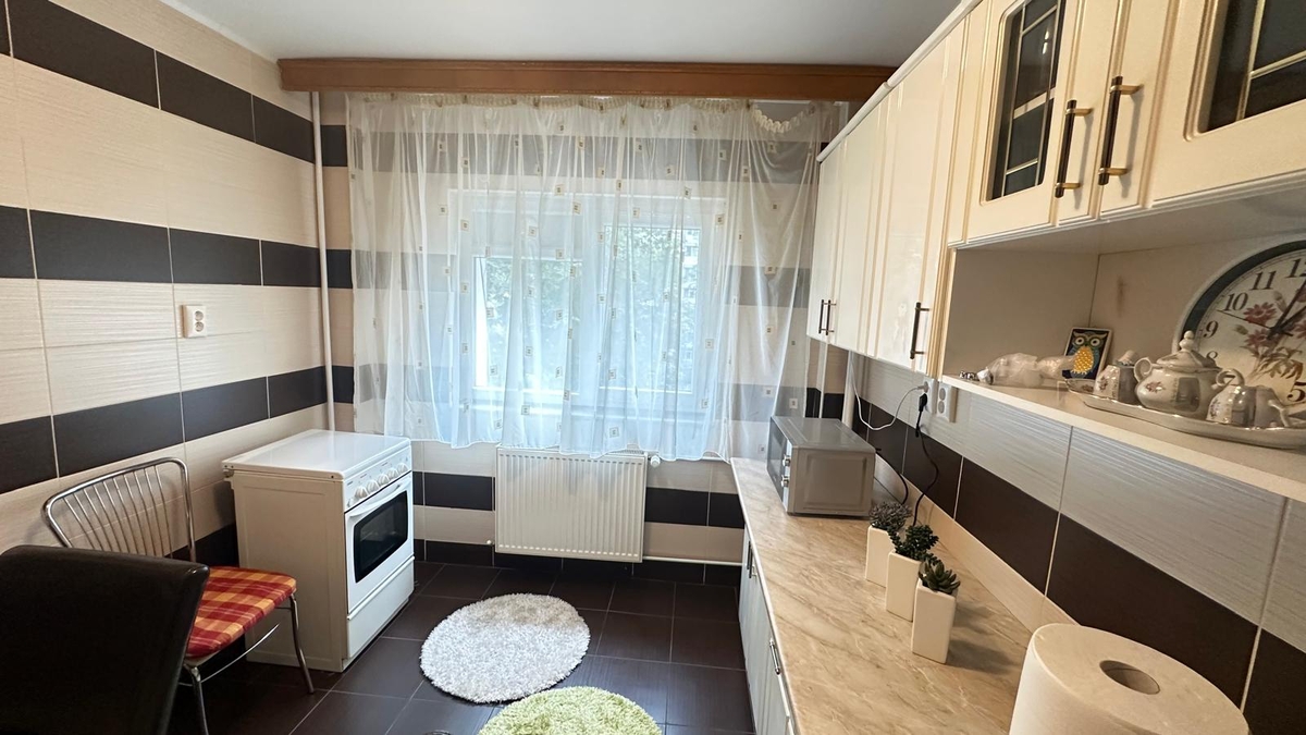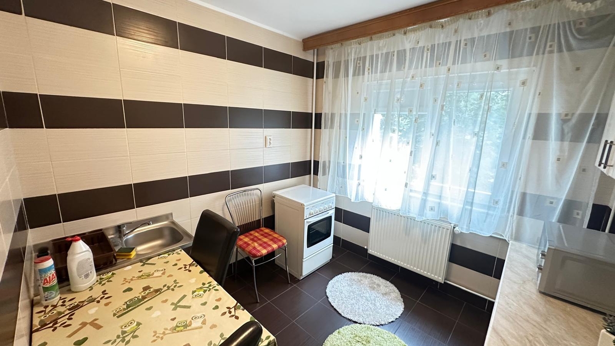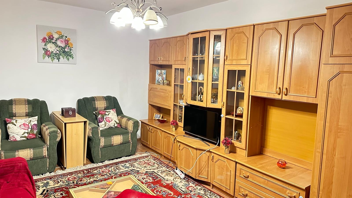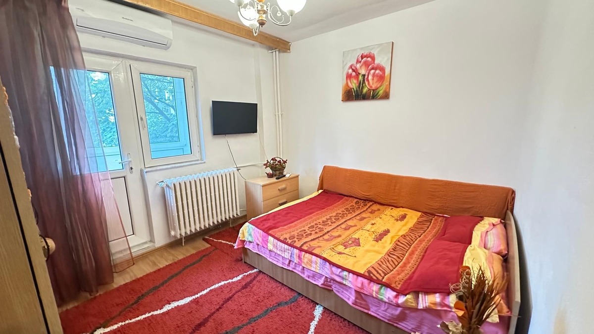 apartament situat la etajul 3, decomandat, mobilat, bucatarie mare mobilata si utilata, 2 balcoane, 2 grupuri sanitare, imbunatatiri- parchet, g+f+ac, termopan, liber, bloc reabilitat