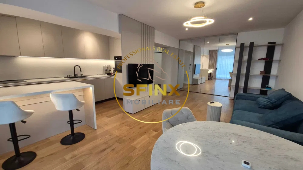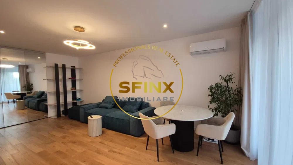 Apartament modern, cu finisaje premium, mobilat complet si dotat cu electrocasnice noi. Atmosfera luminoasa si spatioasa, cu acces la balcon din fiecare camera (living, bucatarie, dormitoare).