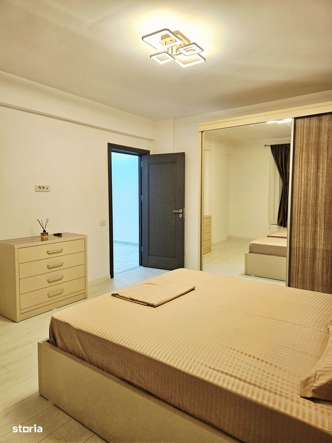Inchiriez apartament 3 camere, superb si extrem de spatios, fix langa complexul comercial "La Strada", bloc constructie 2024, zona centrului comercial, Str. Amurgului, Popesti Leordeni Ilfov, la 10 minute de mers pe jos fata de Metrou Dimitrie Leonida, totul ireprosabil, decomandat, suprafata aproximativ 70 mp, etajul 2/3, in bloc tip boutique, complet mobilat si utilat nou si modern cu loc de parcare inclus in pret, langa bloc.