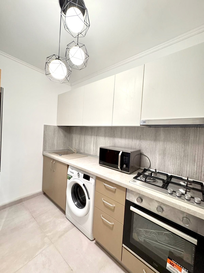 - Confort asigurat: Mobilat modern si utilat complet (masina de spalat, plita gaz, cuptor electric si microunde, combina frigorifica, AC si 2 televizoare).