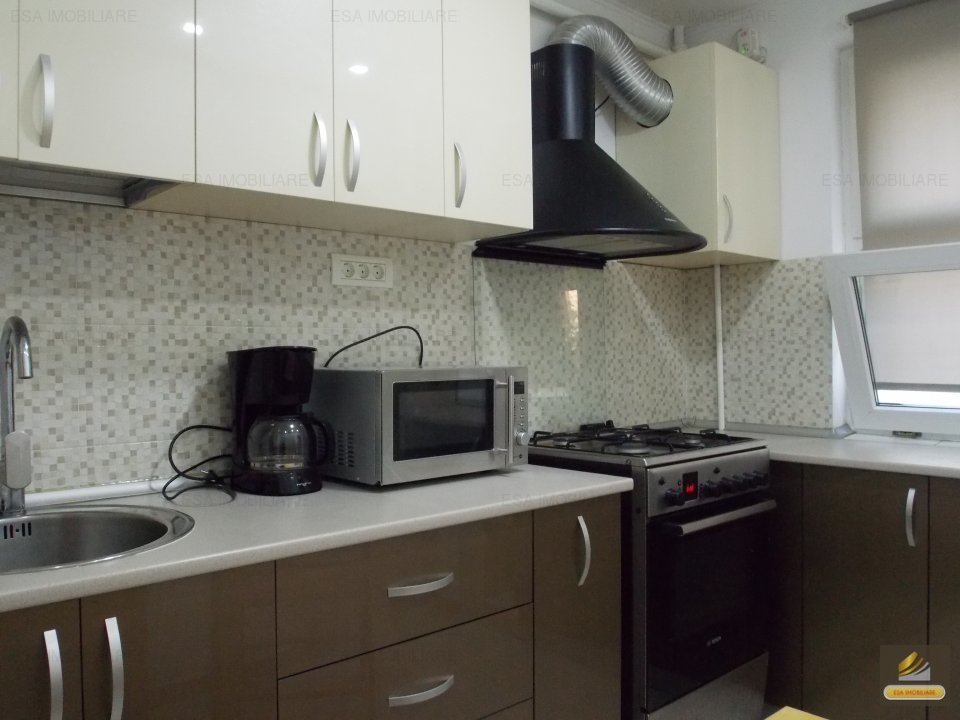 * - Bucatarie mobilata- utilata cu electrocasnie (combina frigorifica, cuptor microunde,aragaz cu cuptor integrat pe gaz,hota)