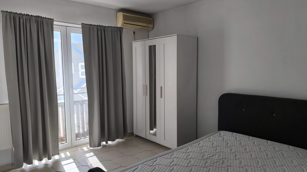 Apartament cu doua dormitoare si zona de zi, utilat si mobilat minimalist, in imobil curat, situat central in zona Universitate, dotat cu aer conditionat, frigider, aragaz, masina spalat rufe. Ideal pentru rezidenta, in inima orasului, aproape de orice, muzee, spitale, localuri, Teatrul National, Gradina Cismigiu, Centrul Vechi, Calea Victoriei.