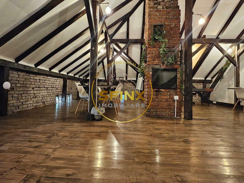 o Mansarda amenajata ca spatiu deschis de birouri, dotata cu mese, scaune si infrastructura IT – pregatita pentru lucru imediat, ideala pentru echipe numeroase sau activitati de tip coworking.