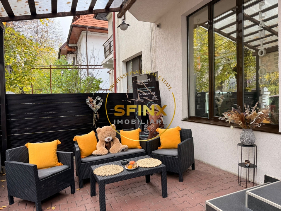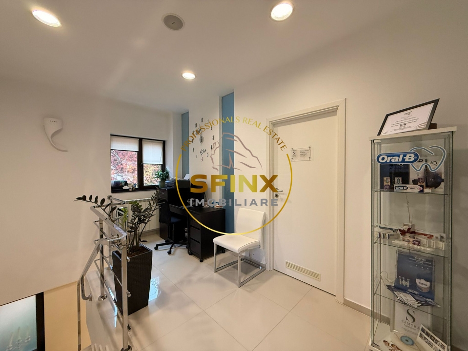 • terasa de 30 mp la intrare si o compartimentare flexibila, potrivita atat pentru cabinet stomatologic/clinica, cat si pentru spatii de birouri.