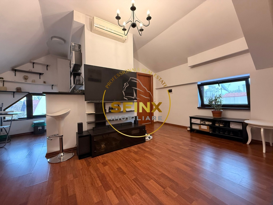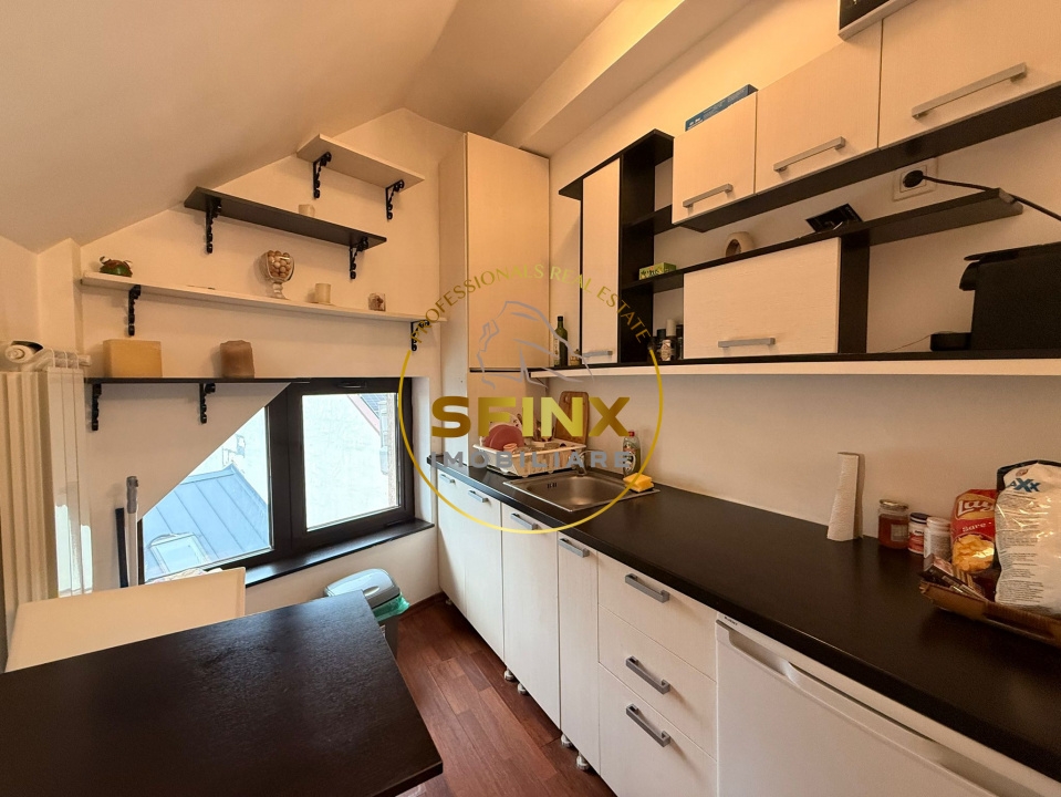 Mansarda: 2 camere, baie, bucatarie; suprafatatotala 49 mp