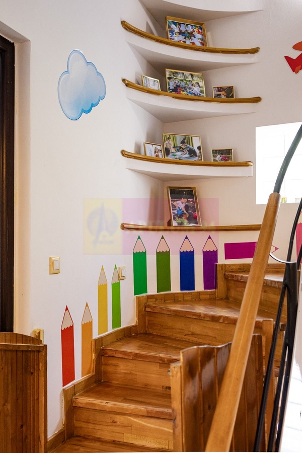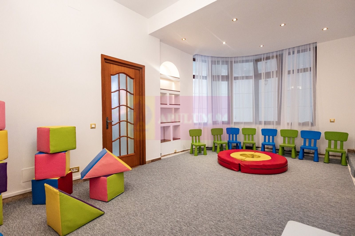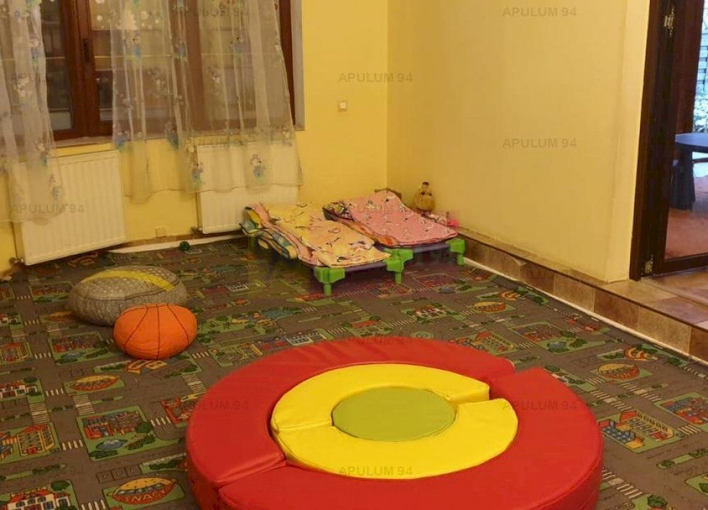 Vila este finalizata dupa anul 2004, structurata pe 4 nivele, Demisol, Parter, Etaj si Mansarda, cu o suprafata utila de aproximativ 120mp/nivel. La Demisol avem adapost de tip ALA, doua camere tehnice, centrala termica de mare putere, rezervor 1000 de litri apa menajera, bucatarie echipata cu aparatura profesionala, grup sanitar cu dus pentru personal la demisol. Parterul este primitor si luminos, cu zona de depozitare, cu sali pentru activitati si/sau odihna, luat masa, camera pentru citit cu semineu, zona de joaca, birou -personal administrativ, acces terasa si curte, curtea este suficient de spatioasa pentru tot felul de activitati, aproximativ 250mp, la etaj se urca pe o frumoasa scara, etaj unde avem deasemenea mai multe sali multifunctionale ce pot fi folosite atat pentru activitati diverse, tot aici avem si un grup sanitar spatios cu strictul necesar pentru cei mici, un balcon mare tip terasa cu vedere spre curtea proprie, mansarda este gandita ca un apartament pentru locuit dar se poate schimba ca destinatie daca se doreste, aici ne bucuram de spatii mari, ferestre tip velux, si de multa lumina naturala ca de fapt in intreaga vila. Inaltimea camerelor permite asfel orice artificiu de design si amplasarea de aparatura si mobilier.