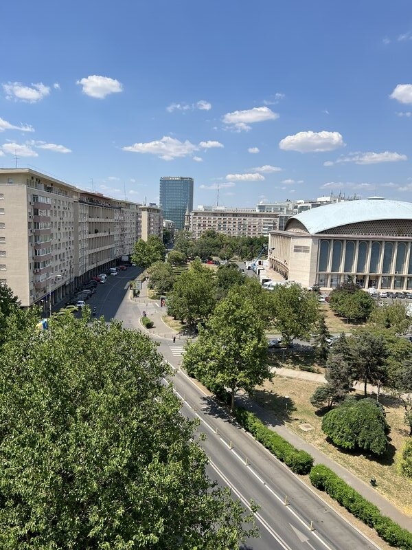 Bloc reabilitat termic recent, geamuri de termopan, pat dublu, parchet, gresie, faianta, vedere spre Sala Palatului, apometre si repartitoare, aer conditionat, frigider, plita electrica, cuptor cu microunde, masina de spalat.