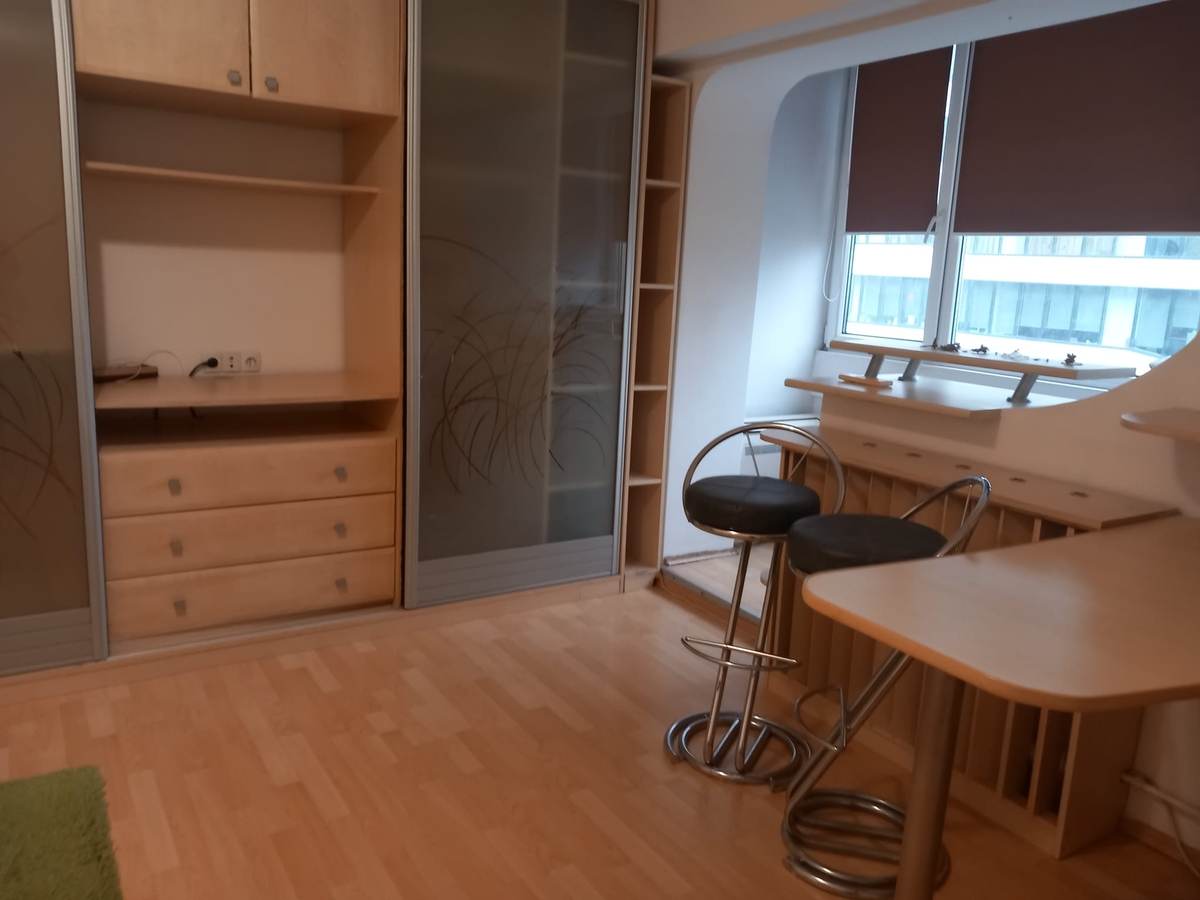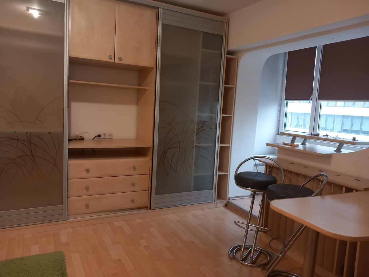 garsoniera spatioasa, luminoasa, etaj intermediar, mobilata (pat dublu, dressing generos), utilata (masina de spalat, plita, frigider), aer conditionat. Intrare stradala, bloc civilizat, conditii bune. Liber.