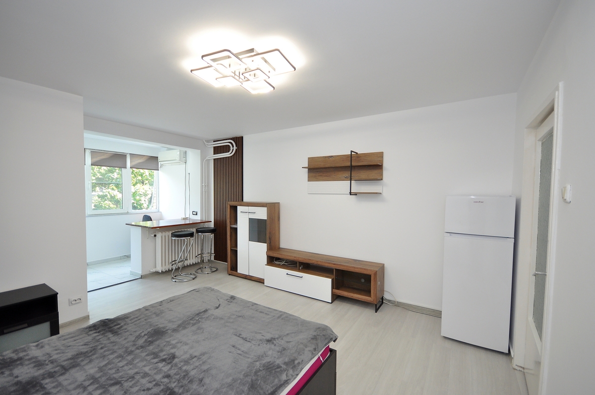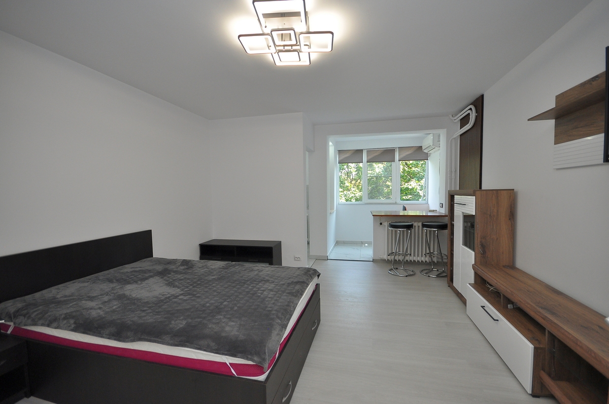 Va ofer spre inchiriere o garsoniera renovata si mobilata situata in zona Favorit foarte aproape de statia de metrou si de AFI Mall.