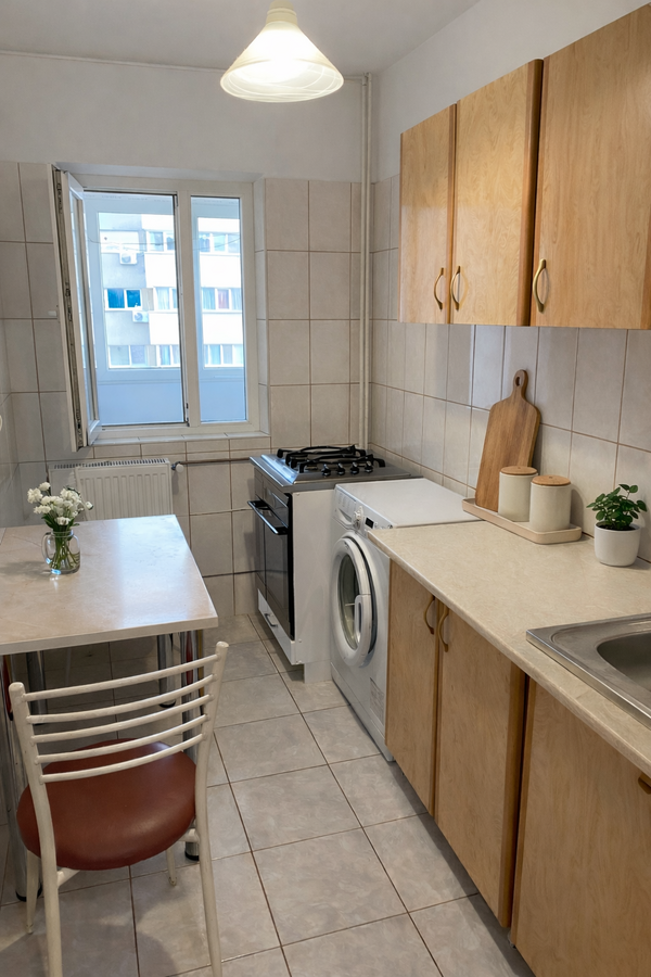 Este o locuinta practica, bine intretinuta si amplasata intr-o zona cu acces facil catre transport, magazine, supermarketuri si alte puncte de interes.