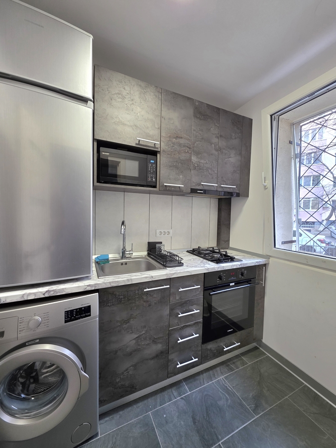 Inchiriere garsoniera cf 1, situata la parterul unui imobil de 10 etaje, anvelopat termic, suprafata este de 34 mp. Mentionez faptul ca imobilul este renovat complet bebeficiind de instalatii sanitar-electric schimbate, mobilat si utilat modern,se preteaza unei singure persoane. In imediata vecinatate avem multiple mijloace de transport in comun, (metroul Titan find la circa 2 minute de mers pe jos, Lidl, Mega Image, Galeriile Titan, sali de sport, scoli, gradinite, vestitul parc IOR, restaurante, etc. Liber.