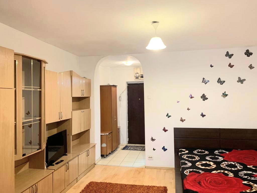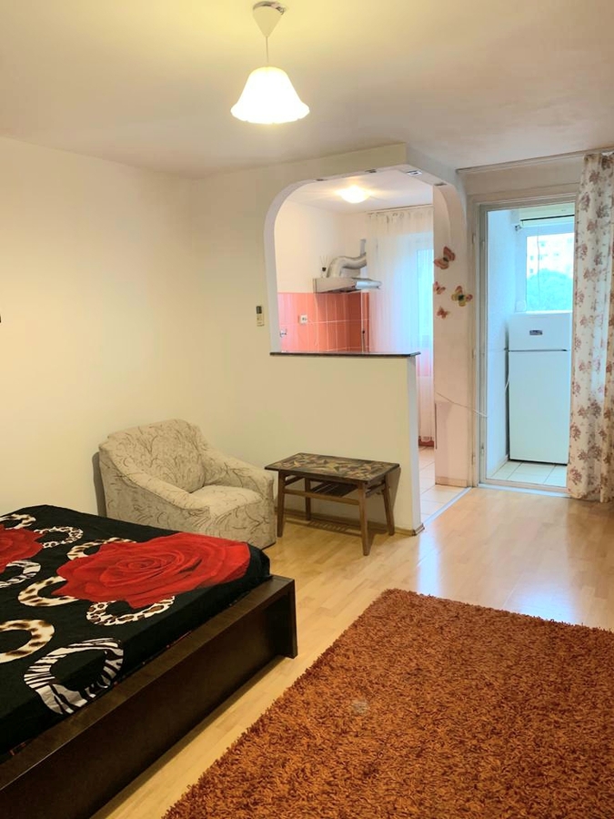 4/10, cf. 1, semidec., 32 mp, pe mijloc, bloc de garsoniere, reabilitat termic, 2 lifturi, vedere placuta, orientata pe est, bucatarie open, mobilata modern, utilata complet, pat dublu, gresie, faianta, parchet, termopan, usa metalica, aer conditionat, libera, contract la Anaf, avans 1+1, agentie.