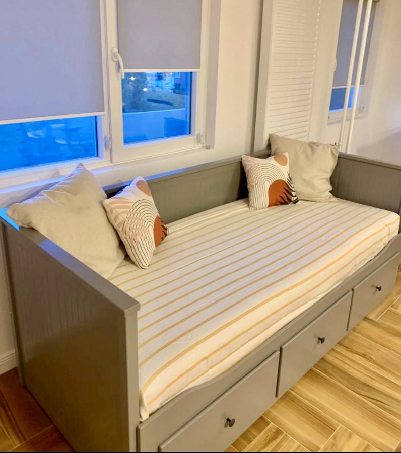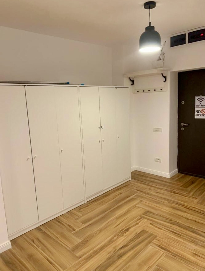 Garsoniera este mobilata si utilata, disponibila pentru inchiriere pe termen lung. Conditiile de inchiriere includ plata unui avans pentru prima luna plus o luna de garantie.