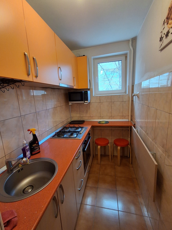 Garsoniera decomandata situata in bloc mixt la etajul 3/10 al unui bloc situat stradal, intrare stradala, reabilitat termic, mobilata si utilata, aer conditionat, aproape de mijloacele de transport in comun si super marketuri.
