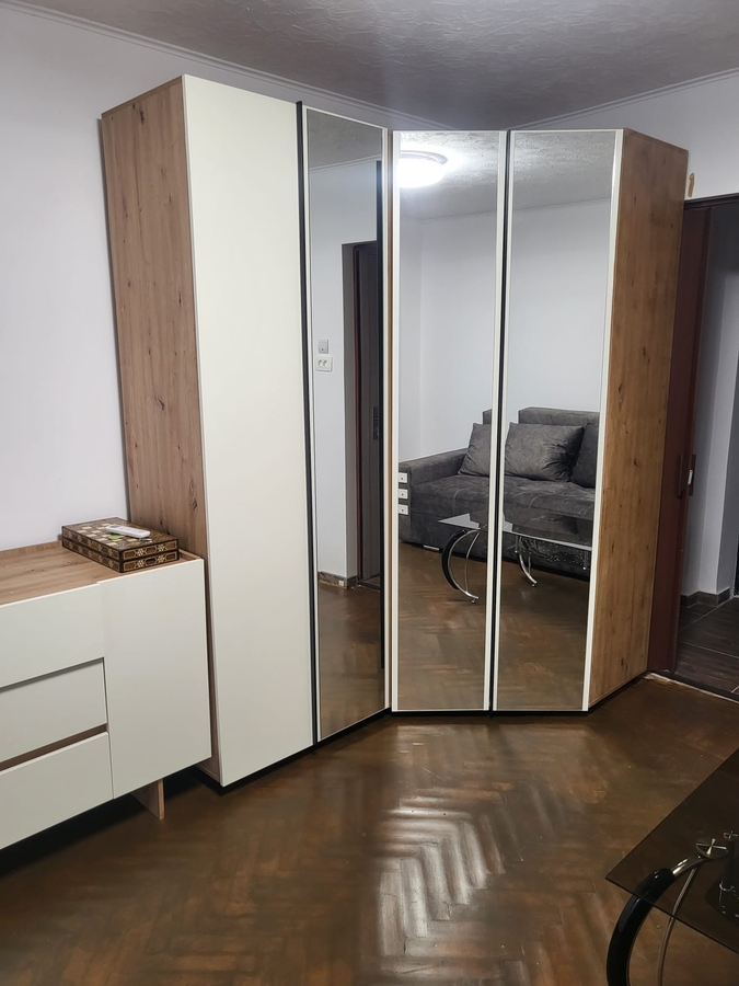 Inchiriez garsoniera renovata si mobilata noua la cheie, situata stradal, cu iesire rapida la statia de tramvai si autobuz, in fata blocului.